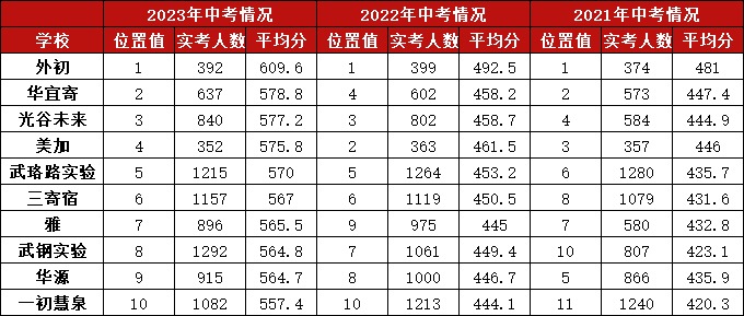 武汉中考均分前十的学校榜单