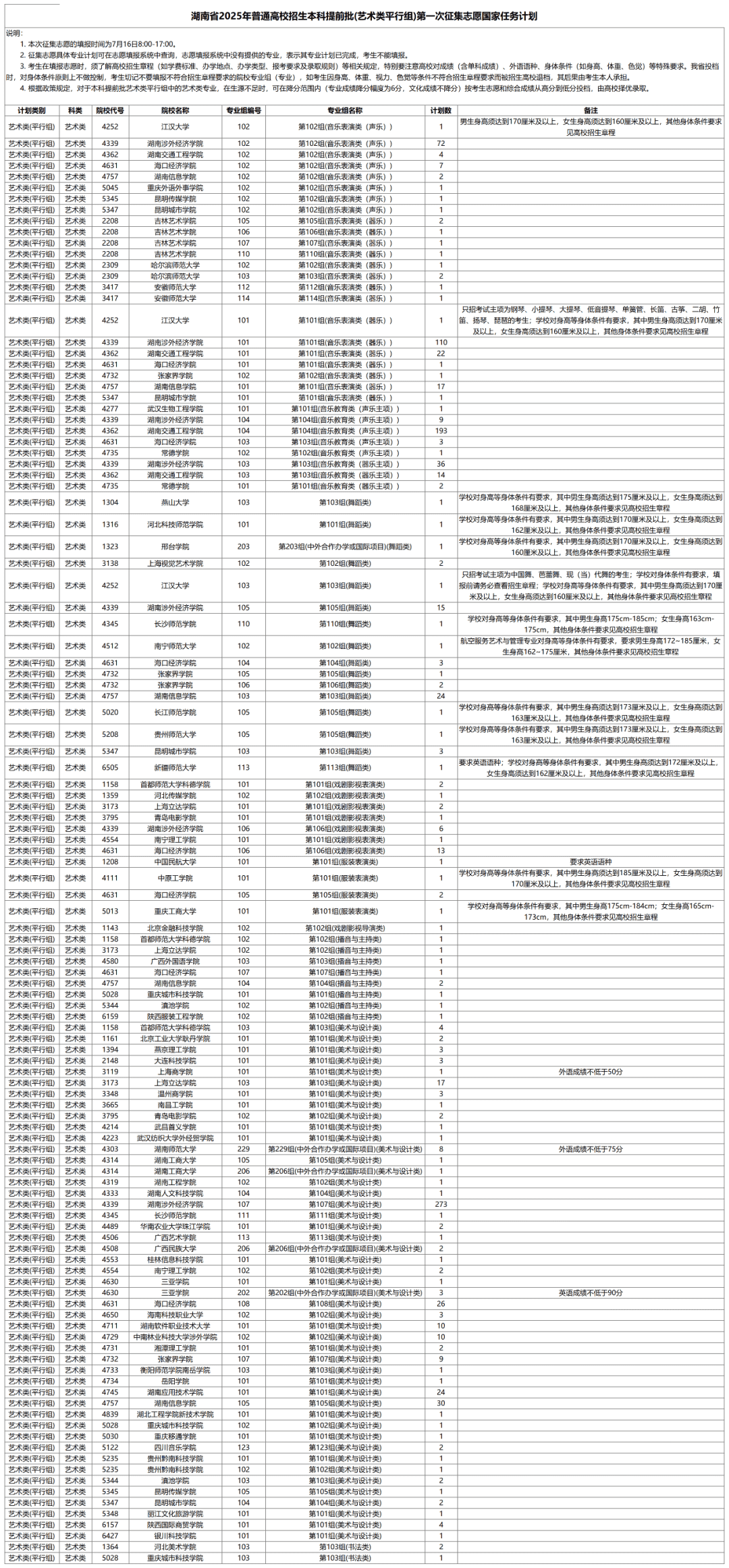 2025湖南艺术类本科提前批第一次征集志愿招生计划 补录院校名单2025年湖南艺术类本科提前批第一次征集志愿招生计...
