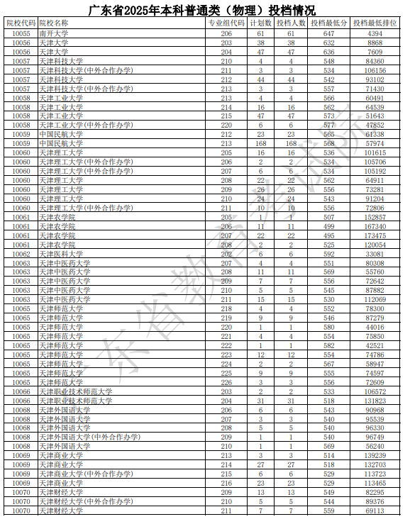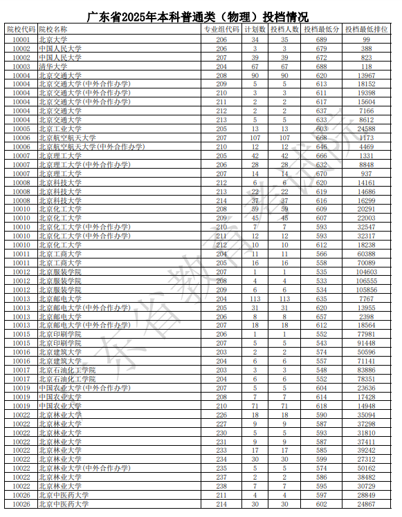 2025年广东高考各高校投档录取分数线一览表(物理)