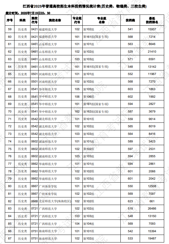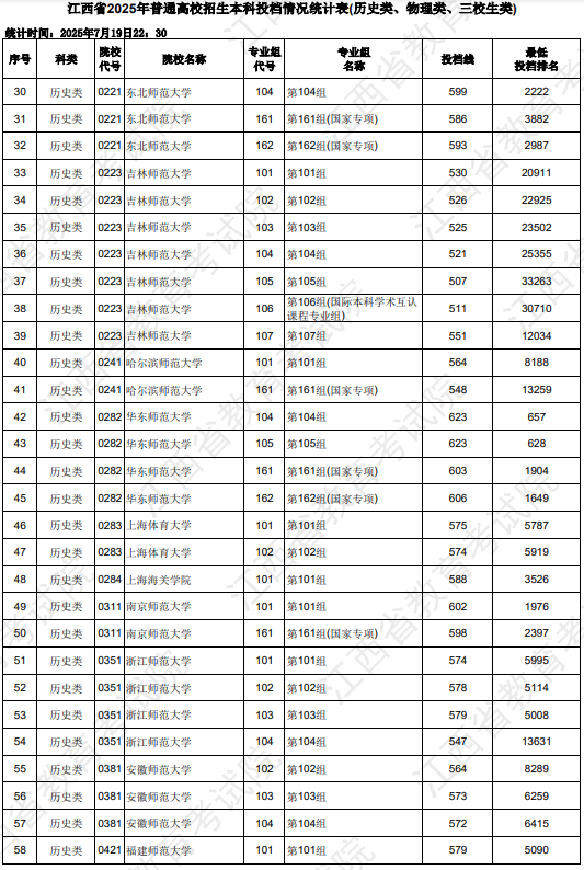 2025江西高考本科批院校录取投档最低分数线(历史类)今年江西历史类本科录取控制分数线为486分,而各高...