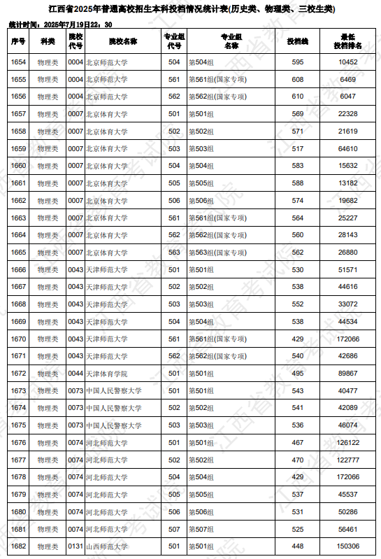 2025江西高考本科批院校录取投档最低分数线(物理类)2025年江西高考物理类本科批录取控制分数线为42...