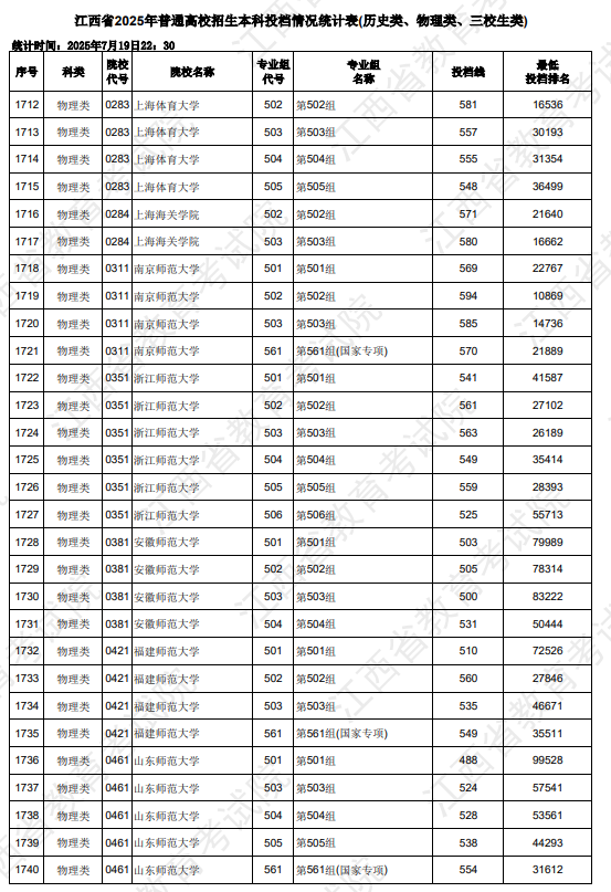 2025江西本科批物理历史投档线公布 各大学录取分数线详情2025年江西本科批投档线呈现出一些明显的特点。从...
