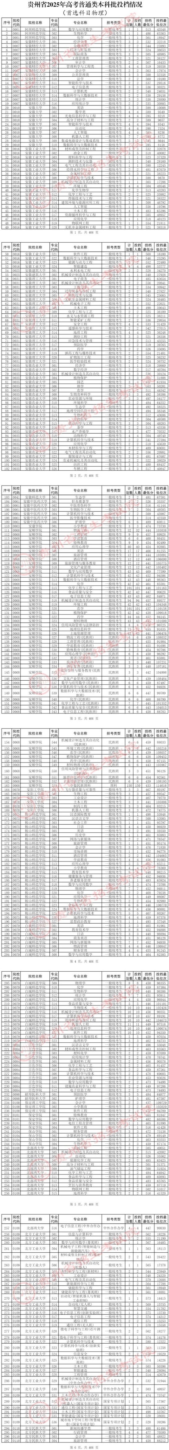 2025全国高校在贵州物理类投档最低分 附最低位次贵州省2025年高考普通类本科批投档情况(首选科目...