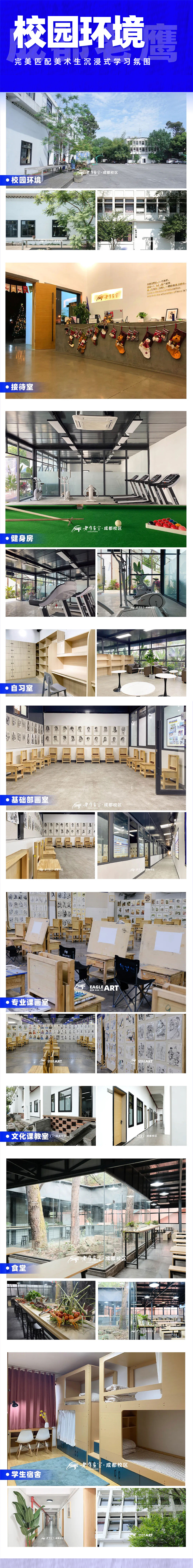 全封闭式管理体系:占地万余平米的独立院落式校园,集教学(全成都唯一一家美院式大教室形式教学,更实话美术生创作灵感发挥)、住宿、餐饮、休闲于一体,这种模式最大程度地减少了外界干扰,保证了学生的学习时间和效率。严格的作息管理和纪律要求,创造出高度专注的学习环境。