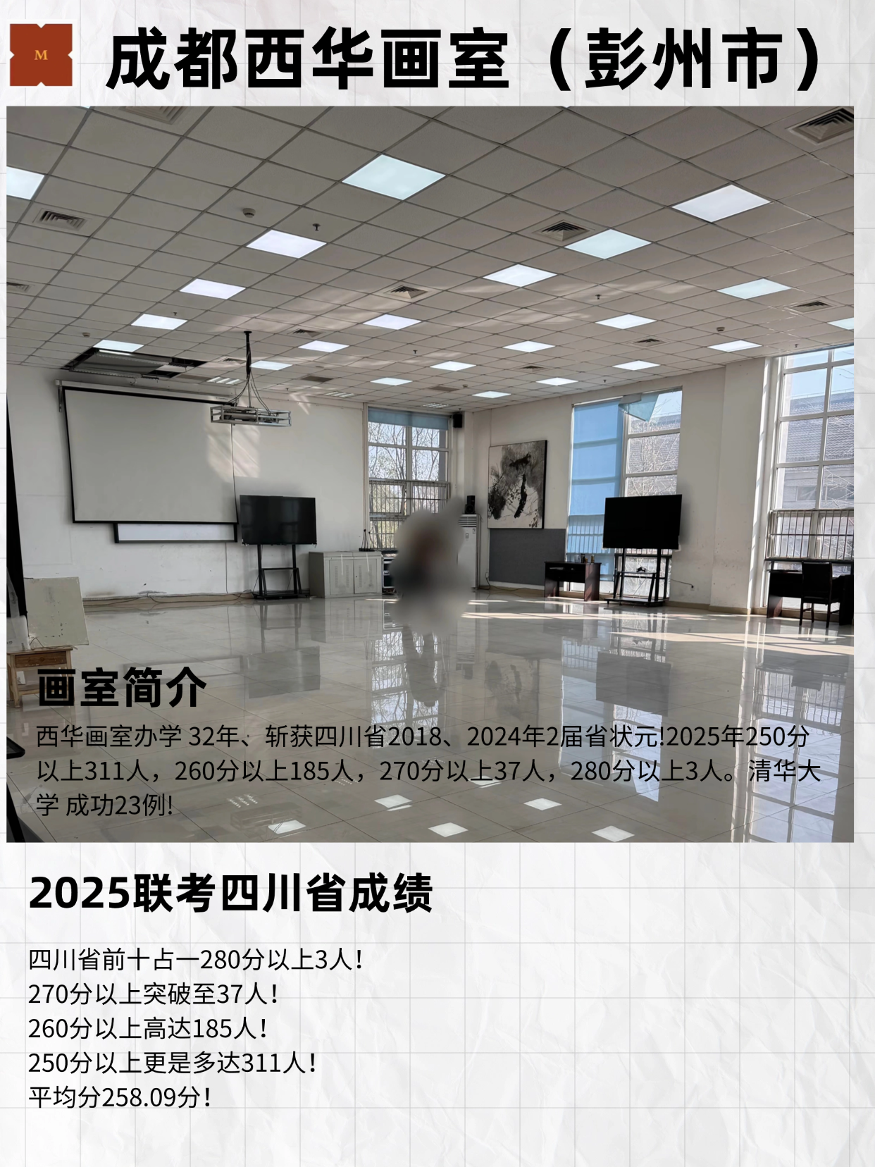 · 推荐亮点:2025届四川省参考243人,250分以上190人占比参考人数78%,画室整体平均分258.06分;