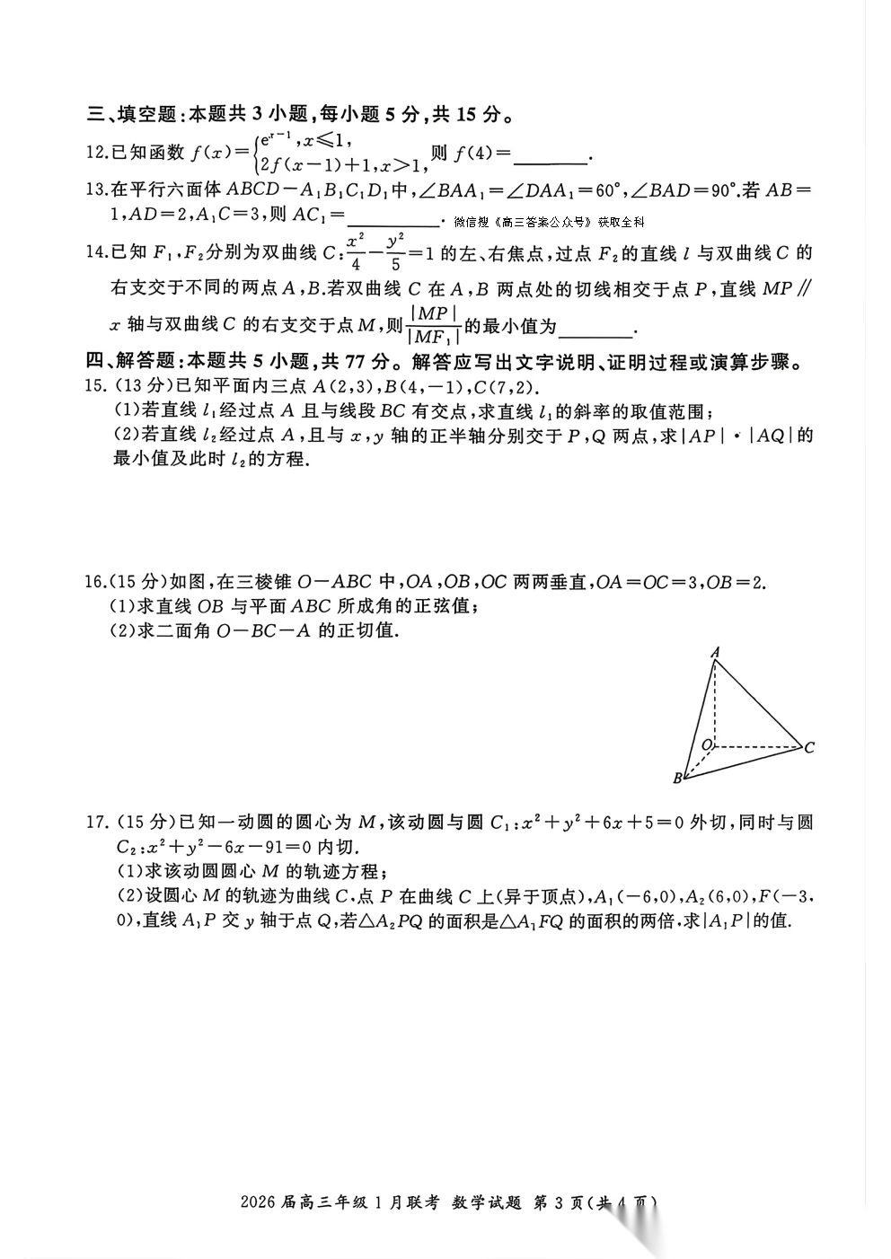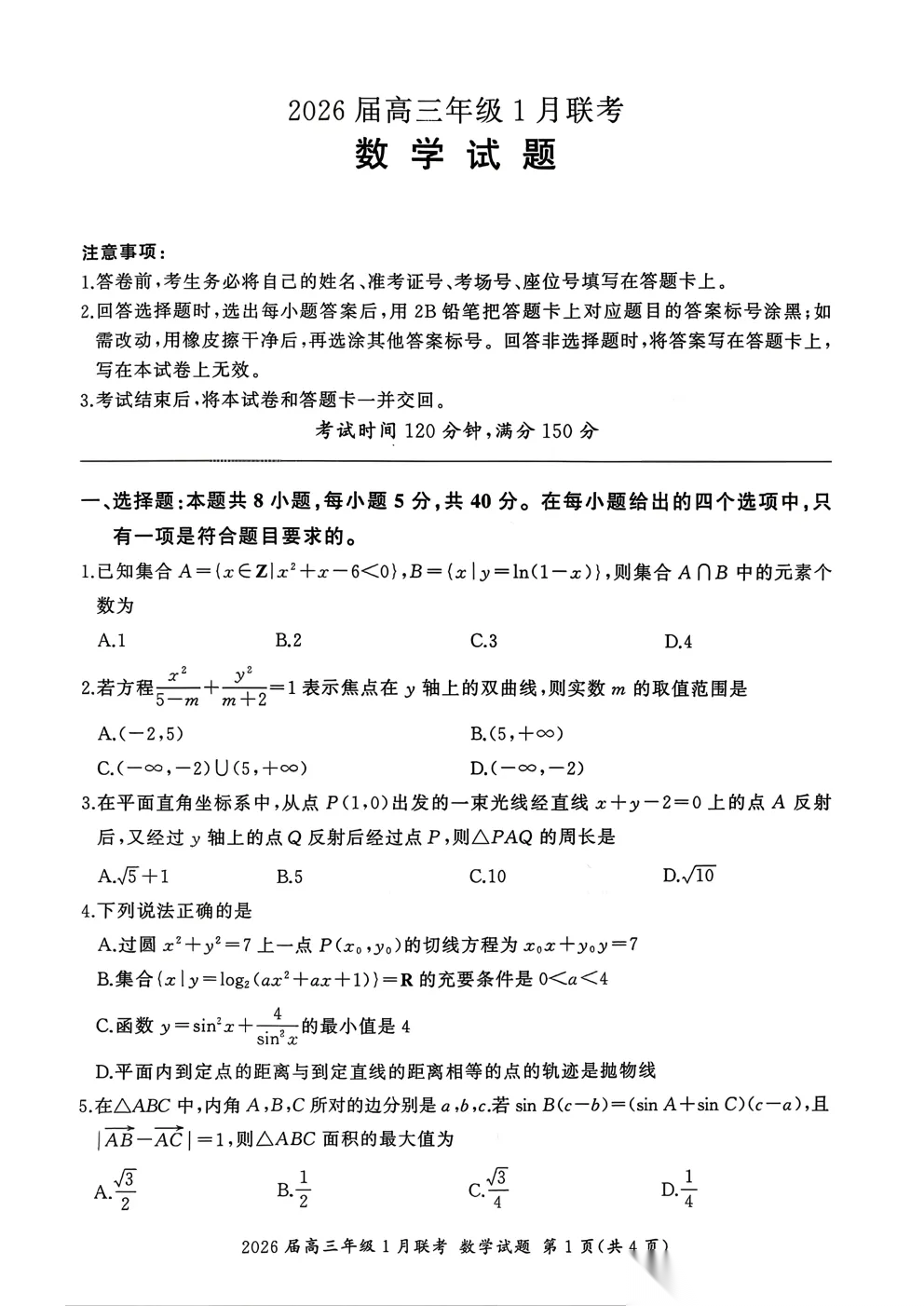 湖南2026届高三第一次八省联考(T8联考)各科试题及答案解析汇总湖南2026届高三第一次八省联考(T8联考)各科试...