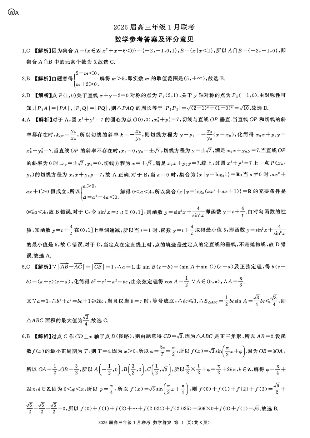河北2026届高三第一次八省联考(T8联考)各科试题及答案解析汇总河北2026届高三第一次八省联考(T8联考)各科试...