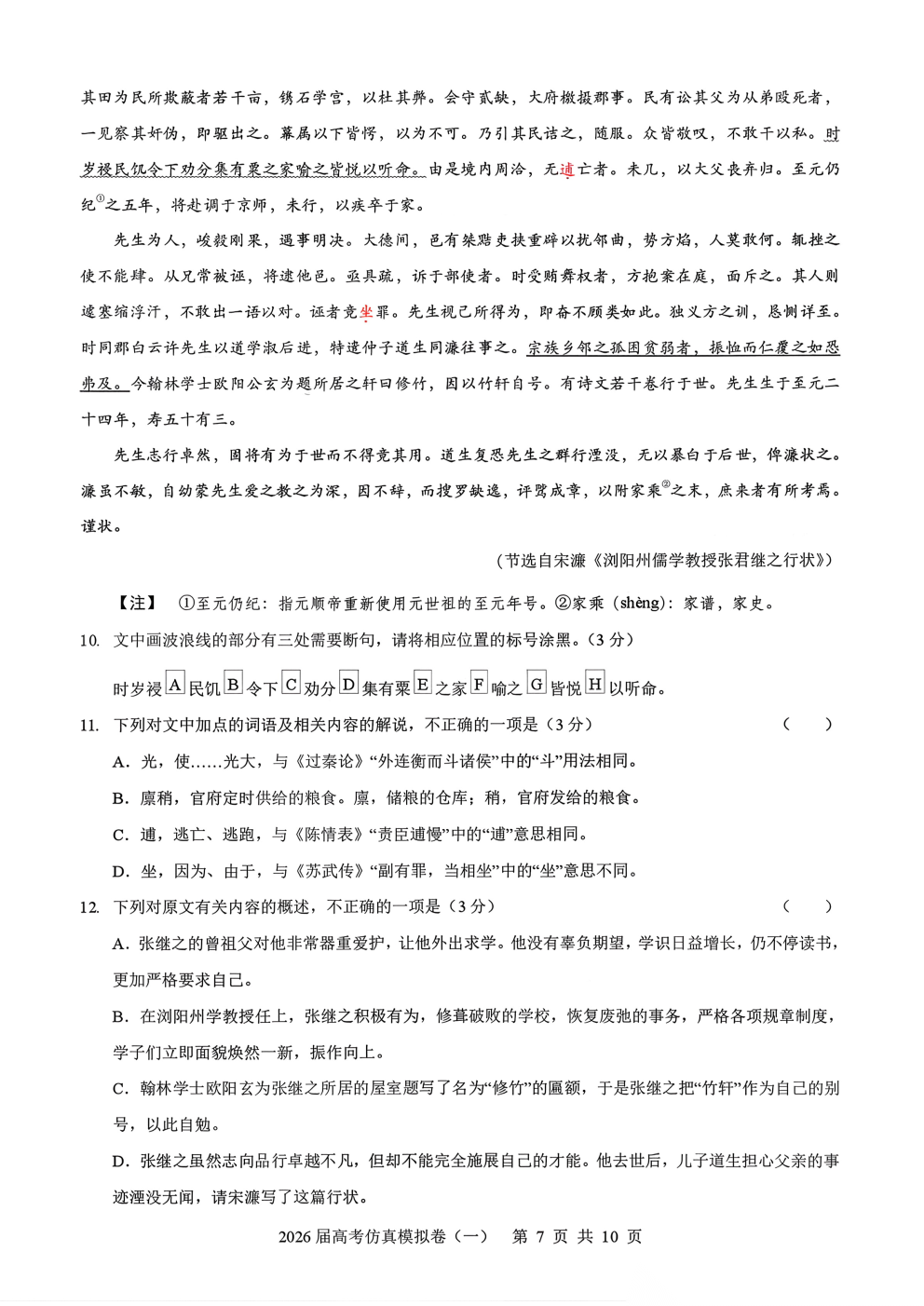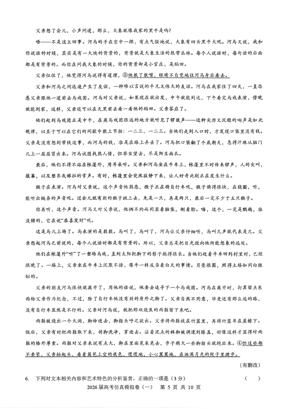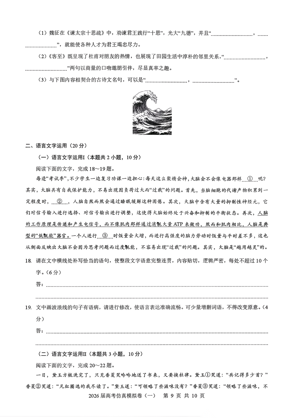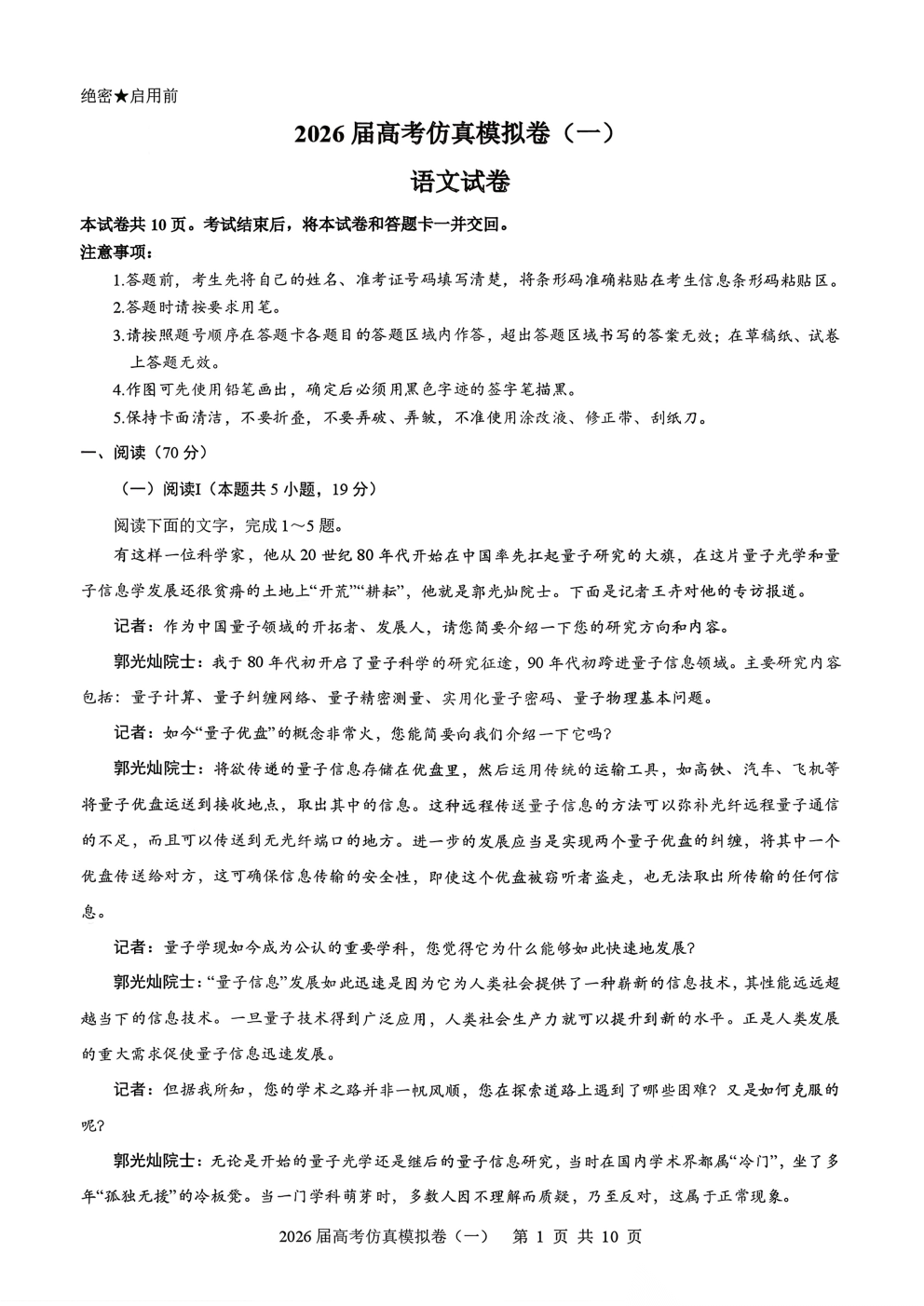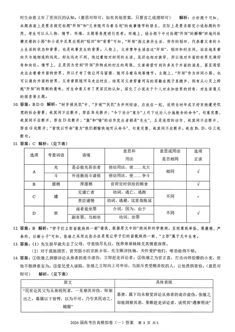 2026届高考仿真模拟卷一答案