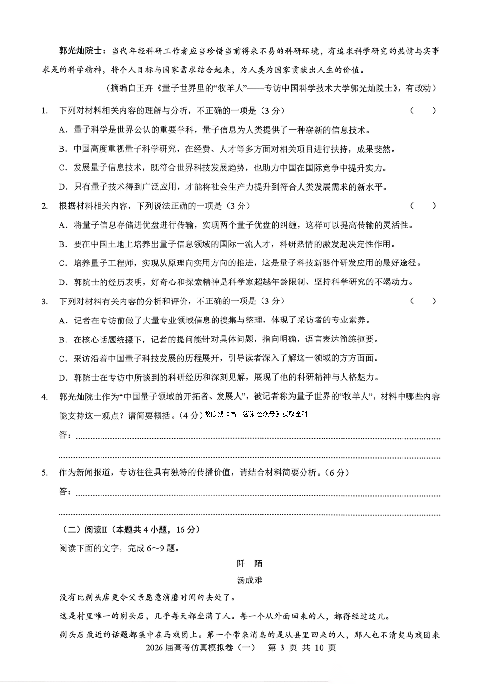 【延安一模全科】延安市20226届普通高中高三模拟测试(一)【延安一模全科】延安市20226届普通高中高三模拟...