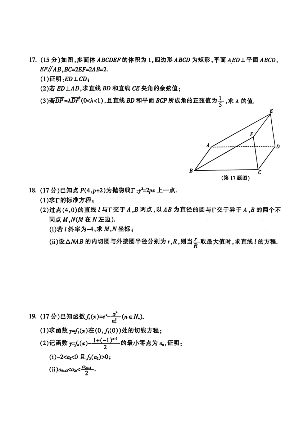 四川省广安市2026届高三第一次模拟考试(广安一诊)数学试题四川省广安市2026届高三第一次模拟考试(广安一诊...