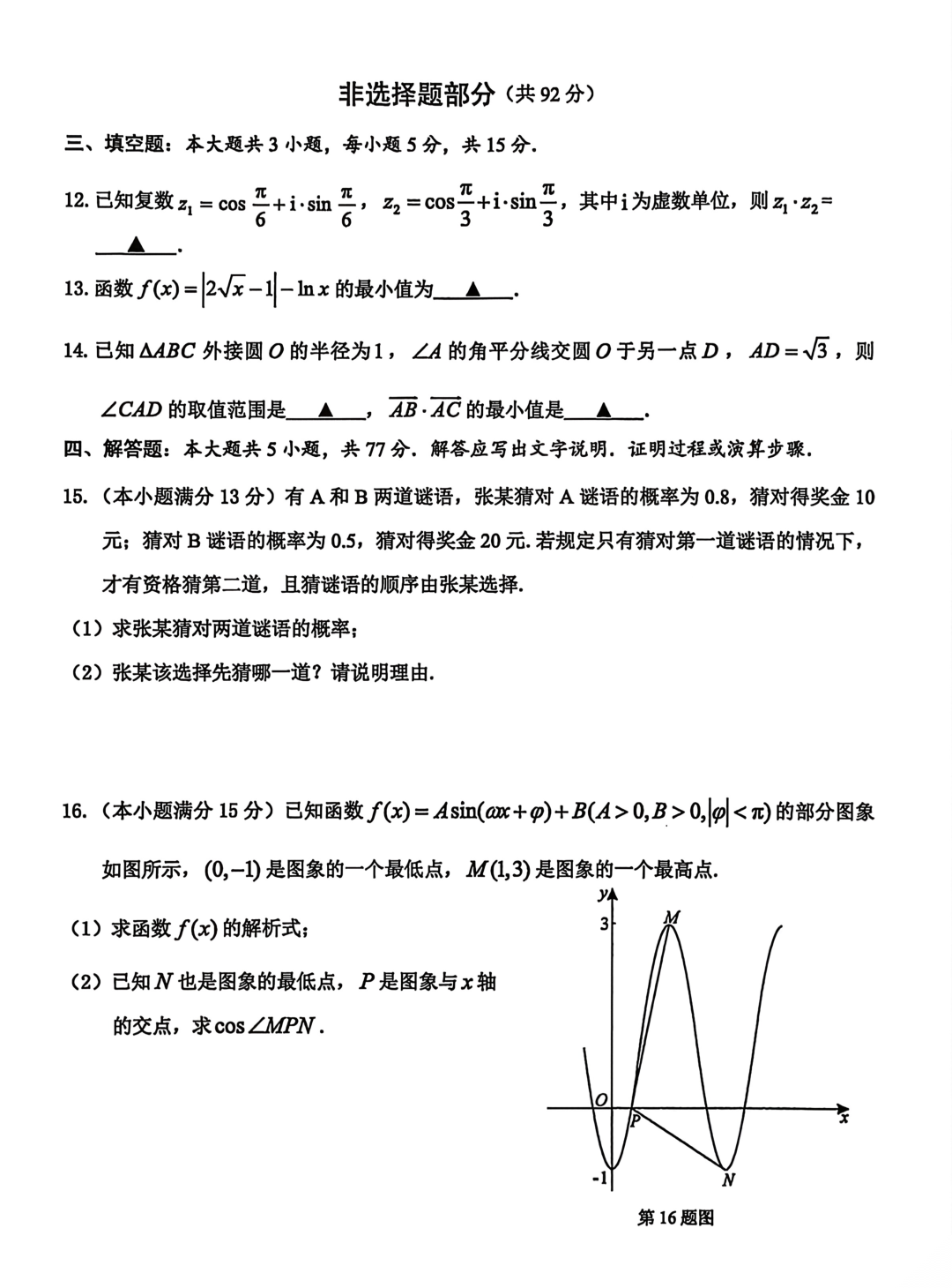 四川省广安市2026届高三第一次模拟考试(广安一诊)数学试题四川省广安市2026届高三第一次模拟考试(广安一诊...