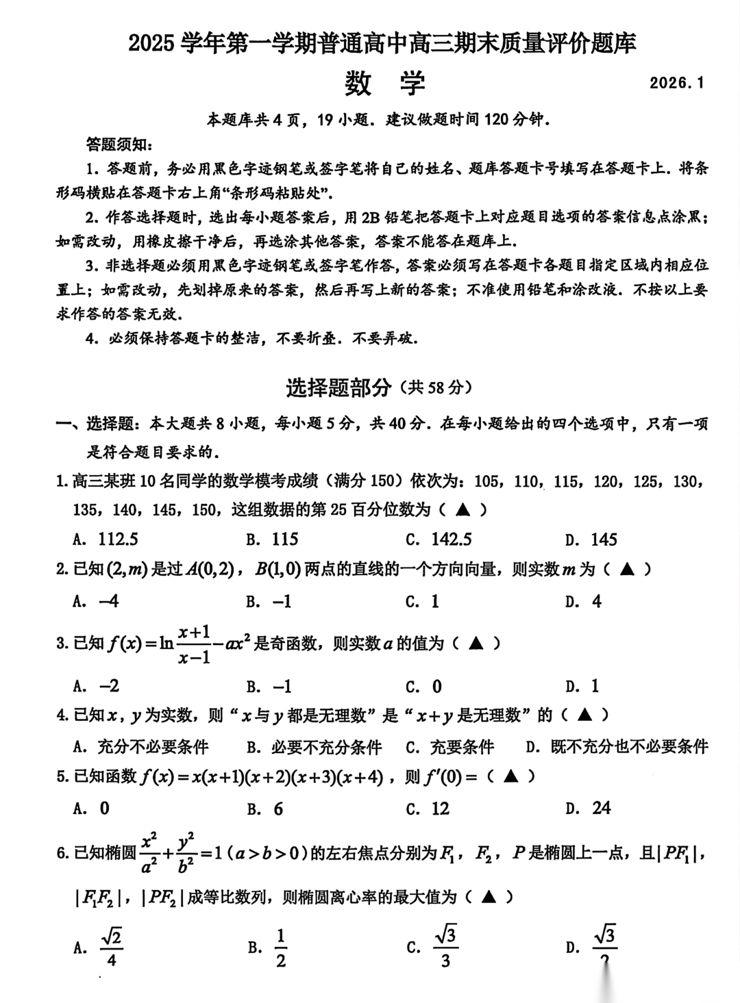 【全科】江西省上进联考2026届高三1月联合测试【全科】江西省上进联考2026届高三1月联合测试