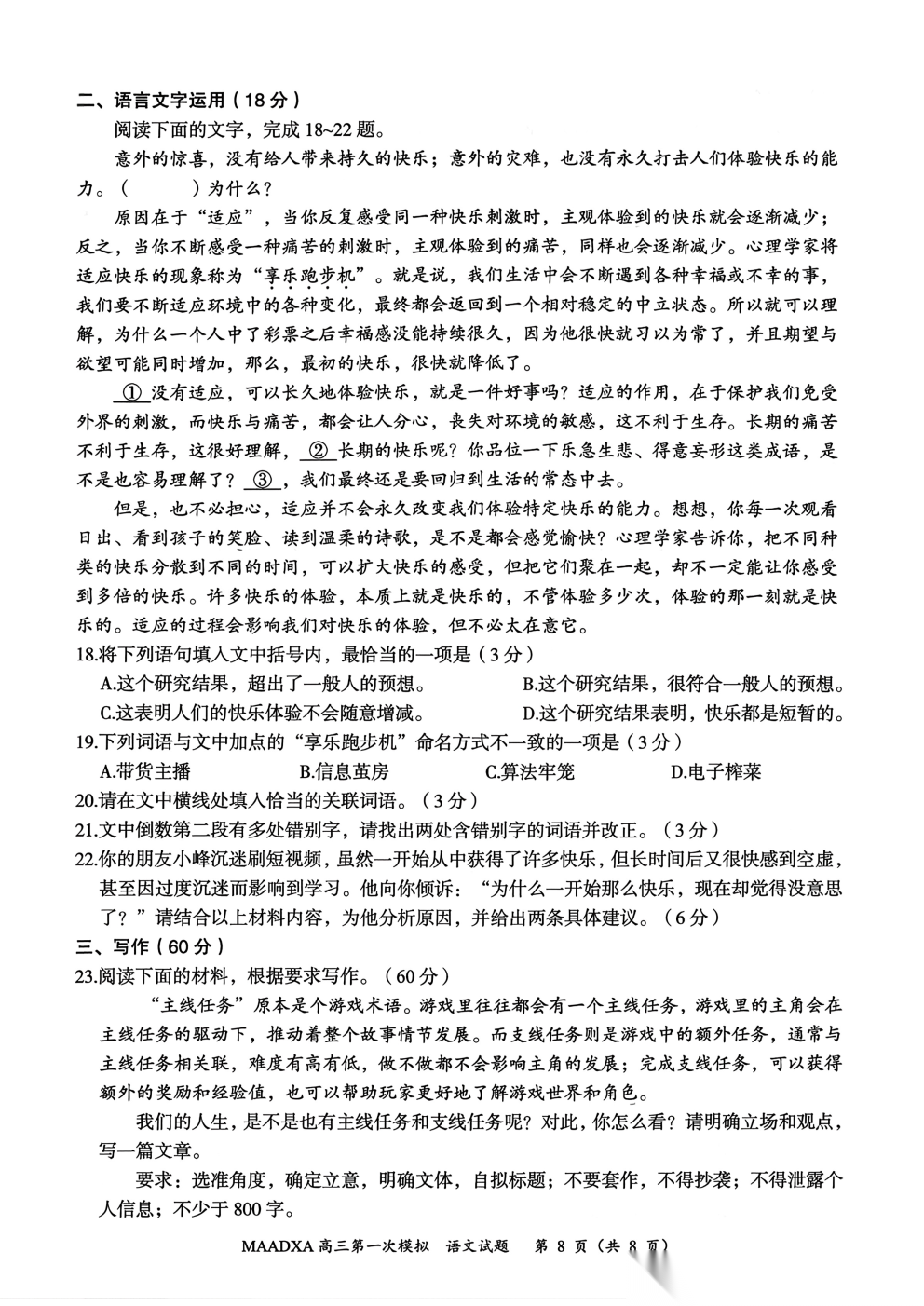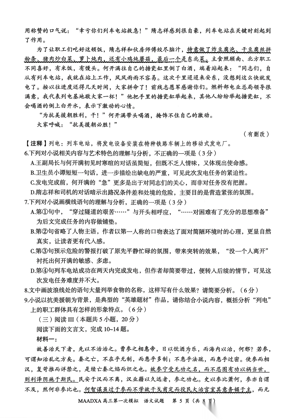 【延安一模全科】延安市20226届普通高中高三模拟测试(一)【延安一模全科】延安市20226届普通高中高三模拟...