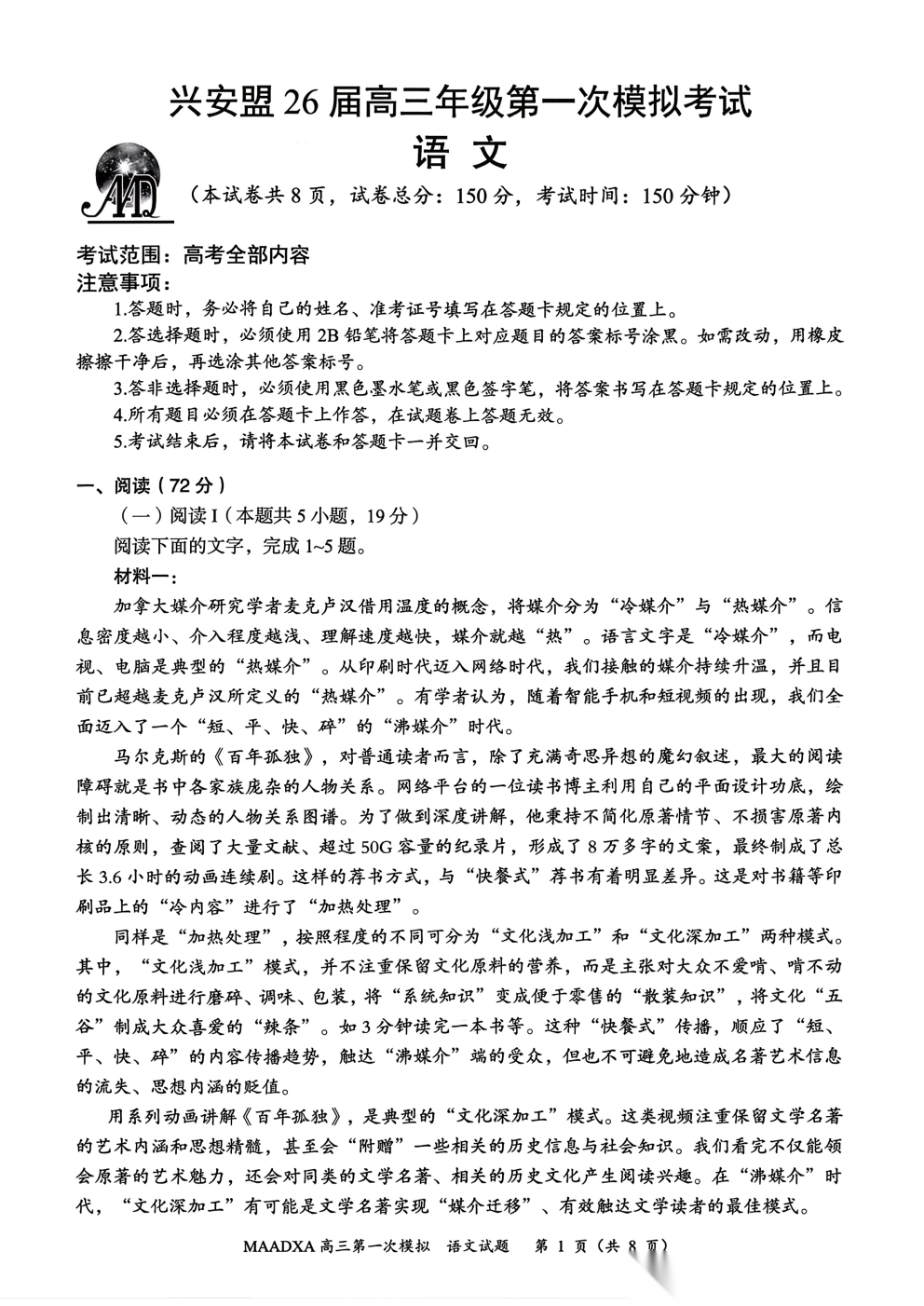 【广安一诊全科】广安市高2026届高三第一次模拟考试【广安一诊全科】广安市高2026届高三第一次模拟考...