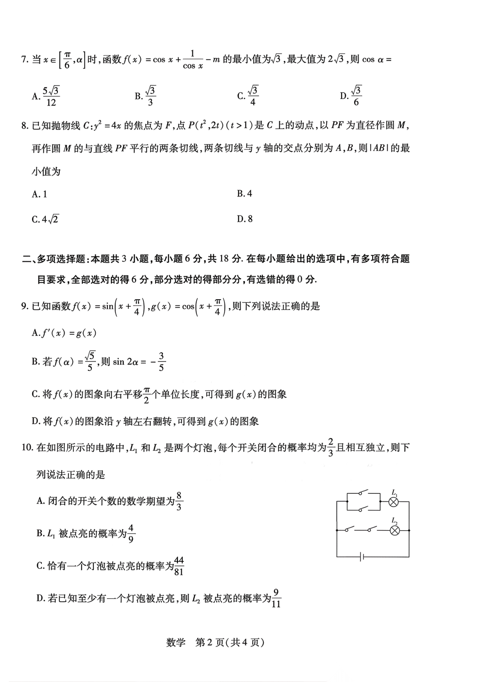 四川省广安市2026届高三第一次模拟考试(广安一诊)数学试题四川省广安市2026届高三第一次模拟考试(广安一诊...