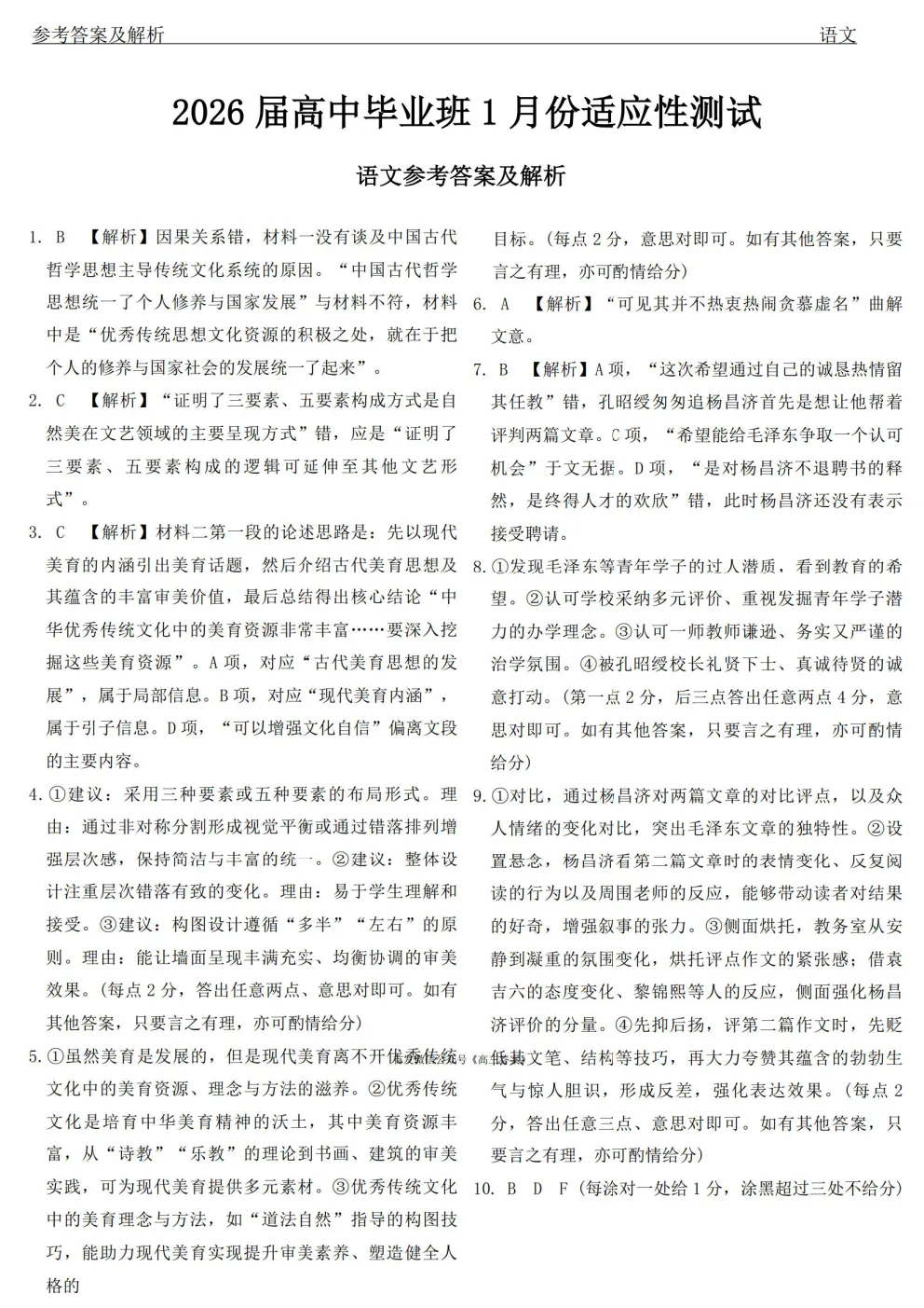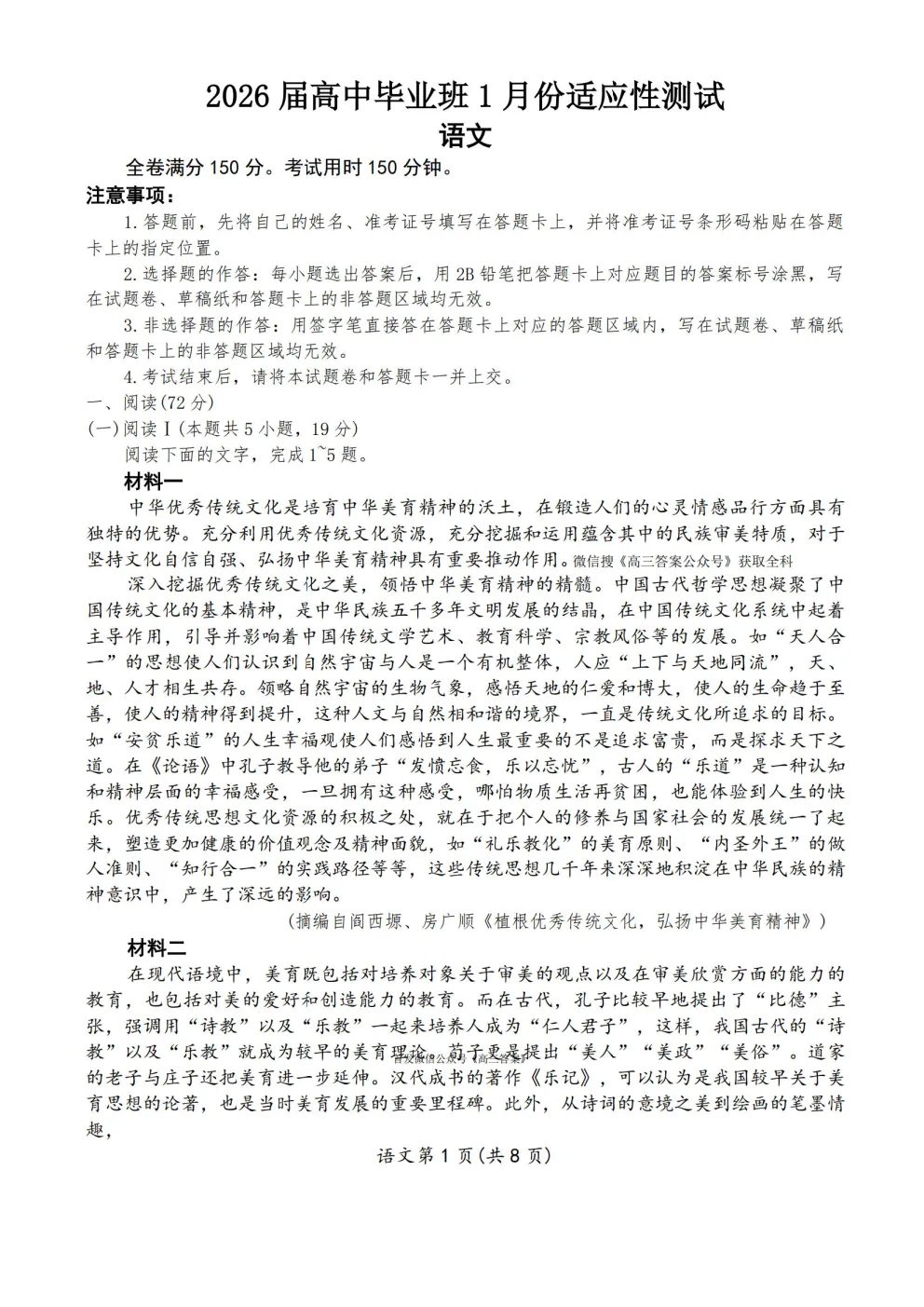 【全科】重庆市第八中学2026届高三1月高考适应性月考卷五(一诊)【全科】重庆市第八中学2026届高三1月高考适应性...