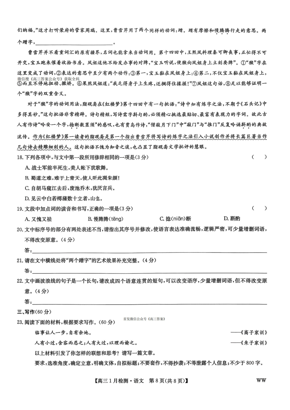 【全科】重庆市第八中学2026届高三1月高考适应性月考卷五(一诊)【全科】重庆市第八中学2026届高三1月高考适应性...
