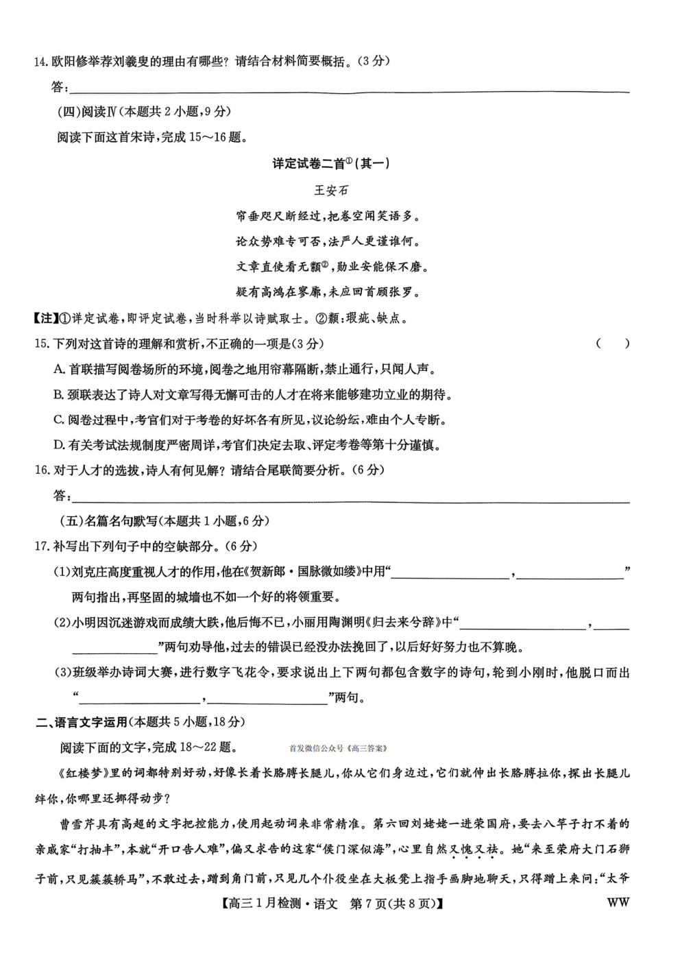 【全科】江西智创协作体2026年元月高三联合调研考试【全科】江西智创协作体2026年元月高三联合调研考...