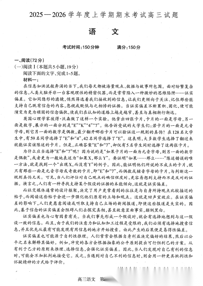 【全科】安徽省合肥一中高2026届高三1月考试【全科】安徽省合肥一中高2026届高三1月考试