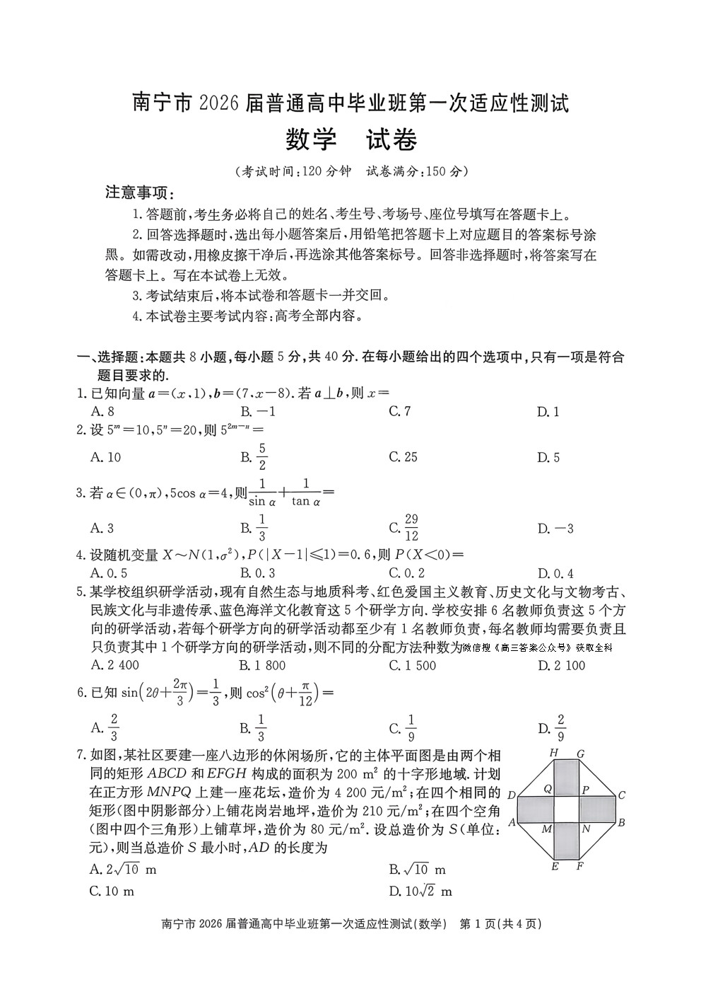 【广安一诊全科】广安市高2026届高三第一次模拟考试【广安一诊全科】广安市高2026届高三第一次模拟考...