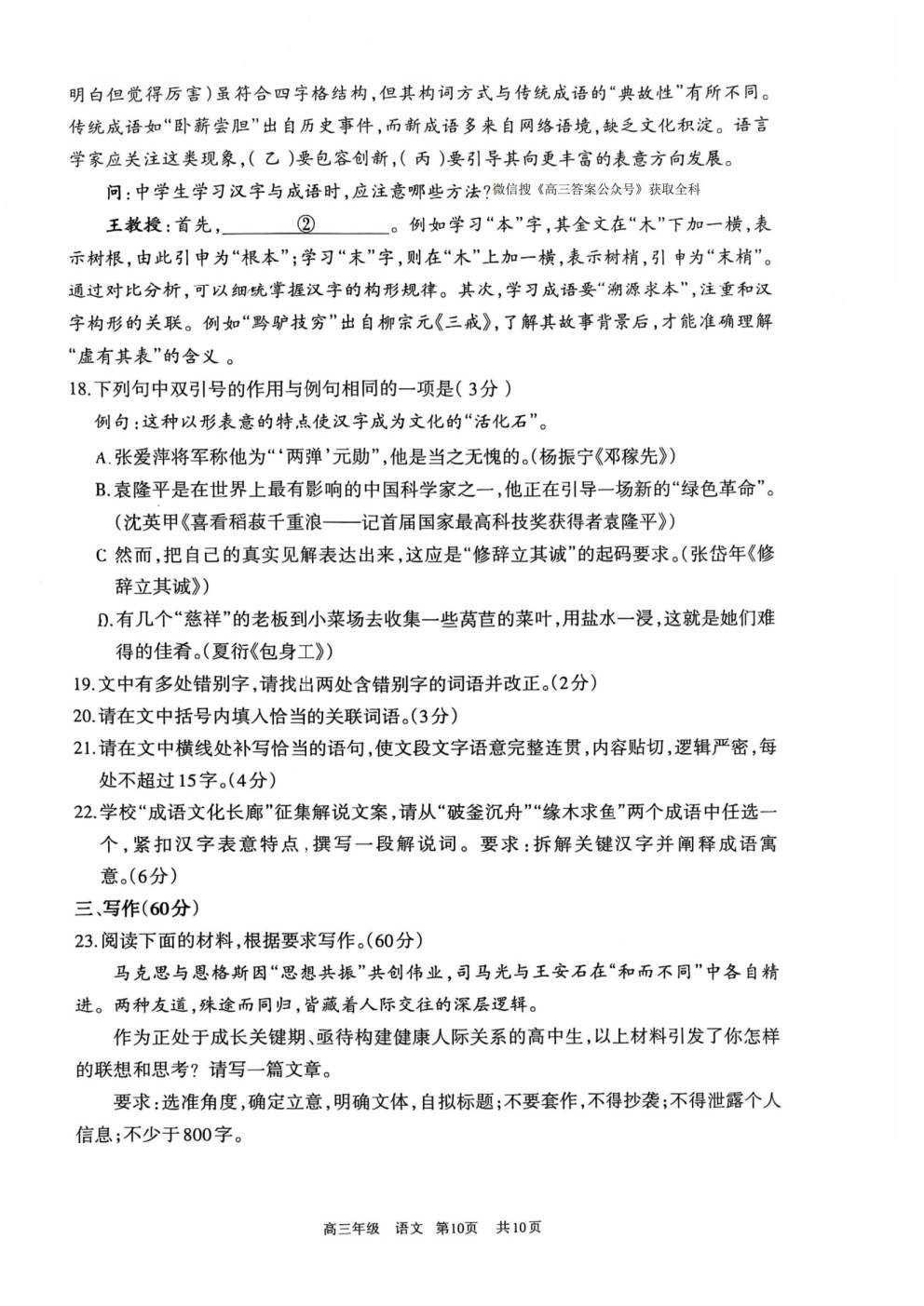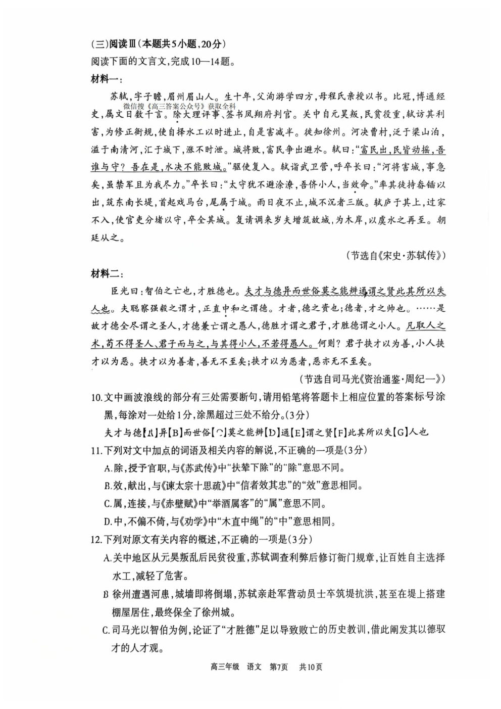 【延安一模全科】延安市20226届普通高中高三模拟测试(一)【延安一模全科】延安市20226届普通高中高三模拟...