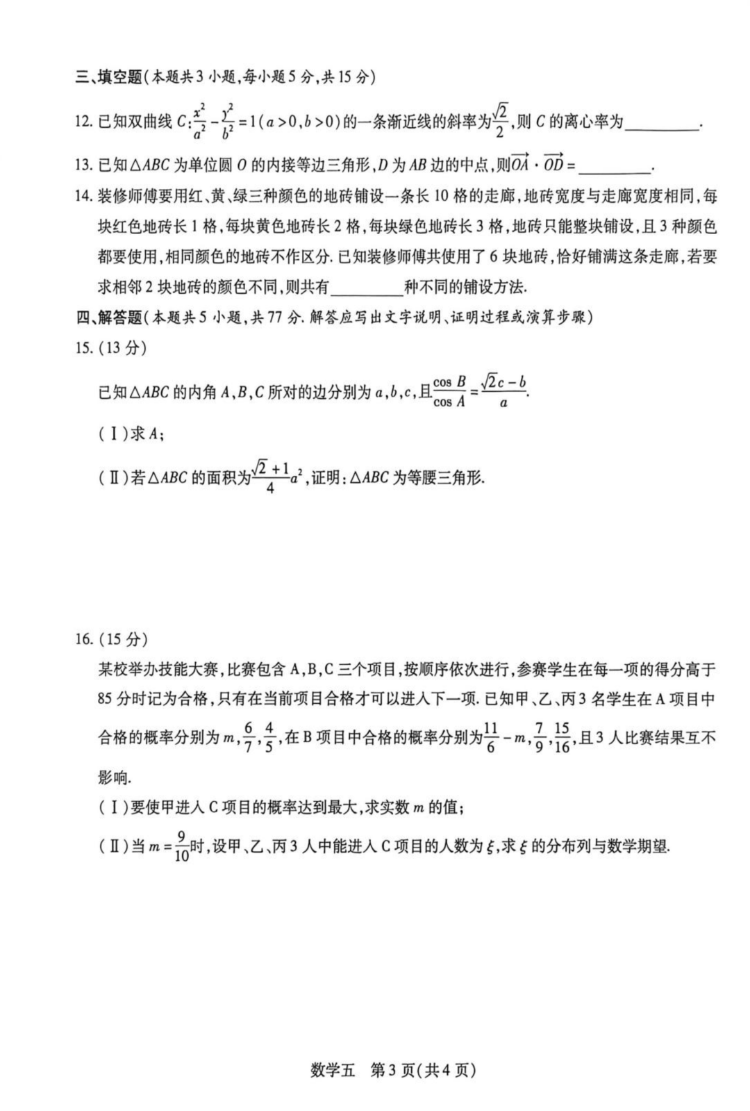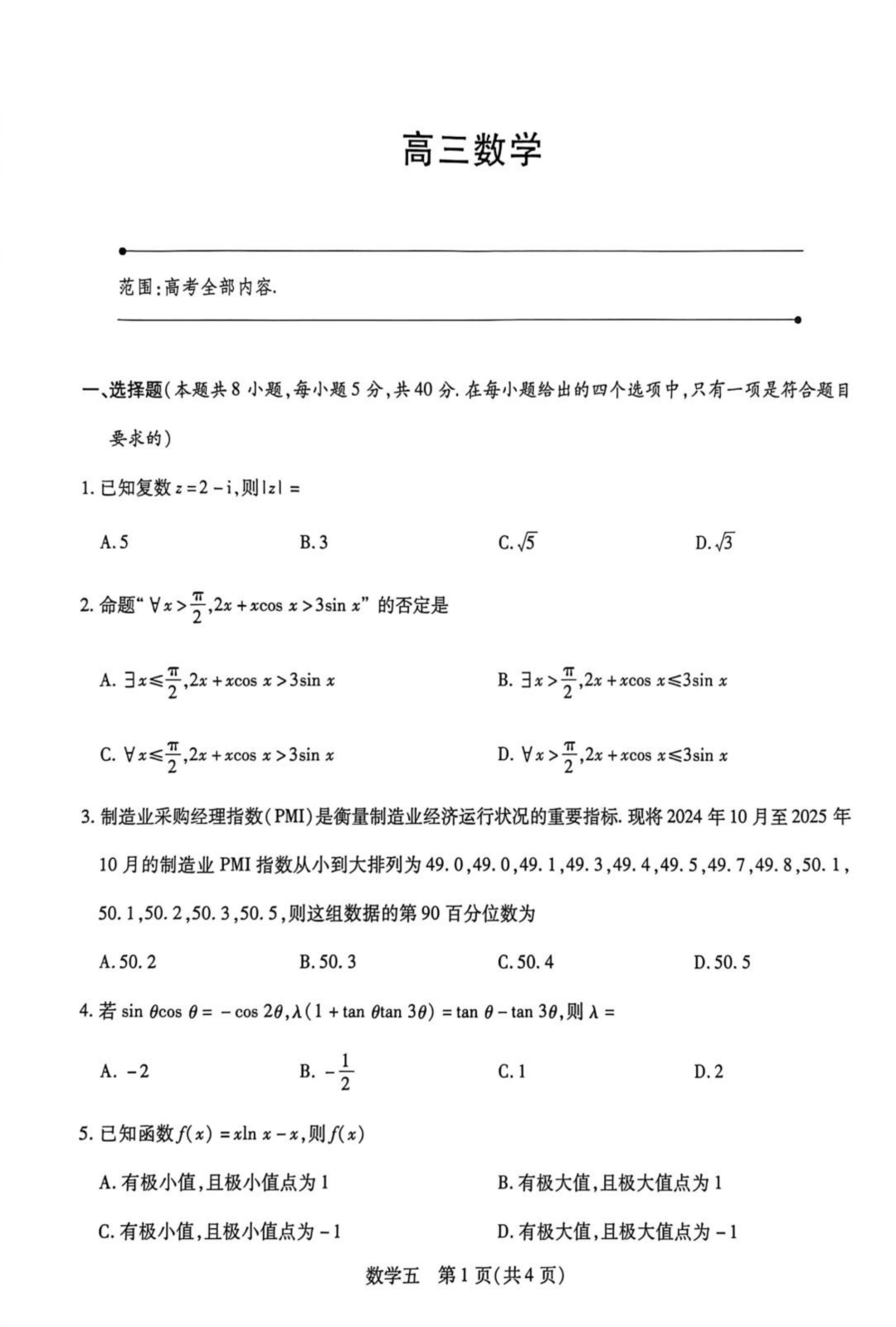 重庆八中2026届高考适应性月考卷(五)数学试题重庆八中2026届高考适应性月考卷(五)数学试题