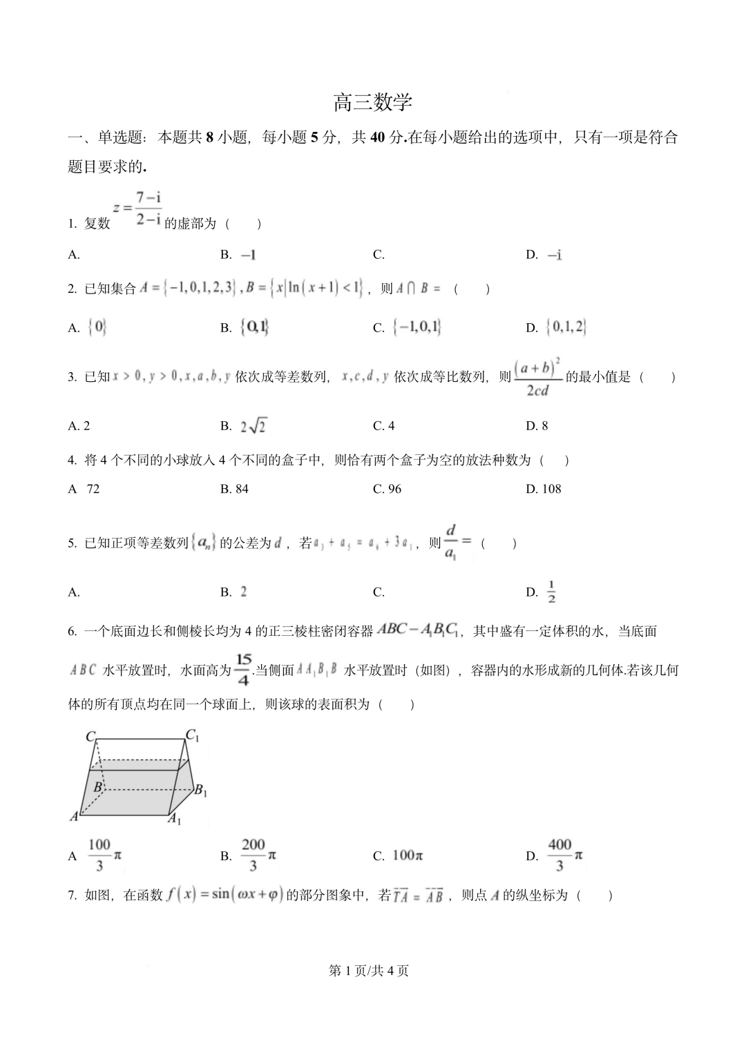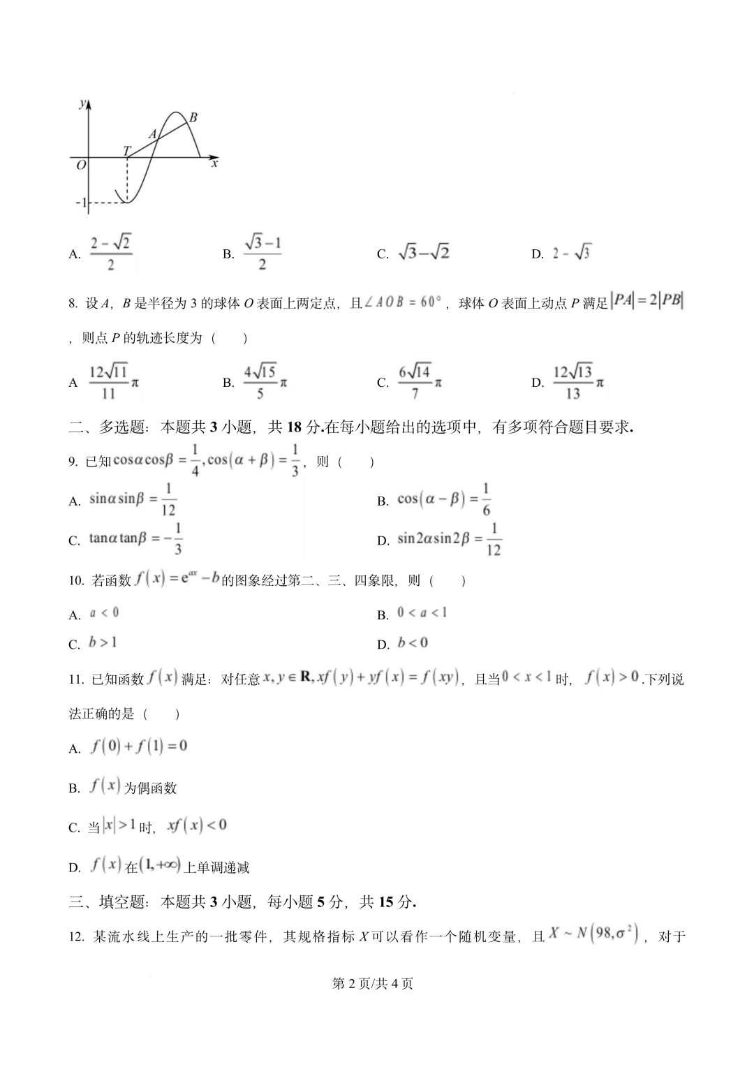 四川省广安市2026届高三第一次模拟考试(广安一诊)数学试题四川省广安市2026届高三第一次模拟考试(广安一诊...