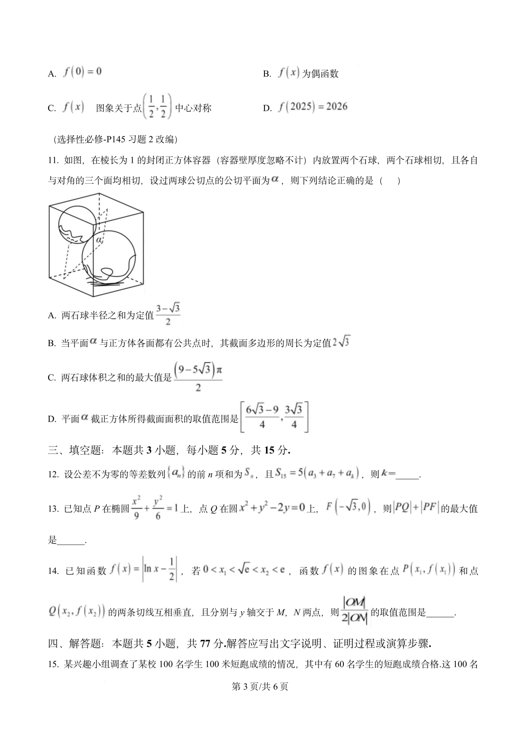 四川省广安市2026届高三第一次模拟考试(广安一诊)数学试题四川省广安市2026届高三第一次模拟考试(广安一诊...