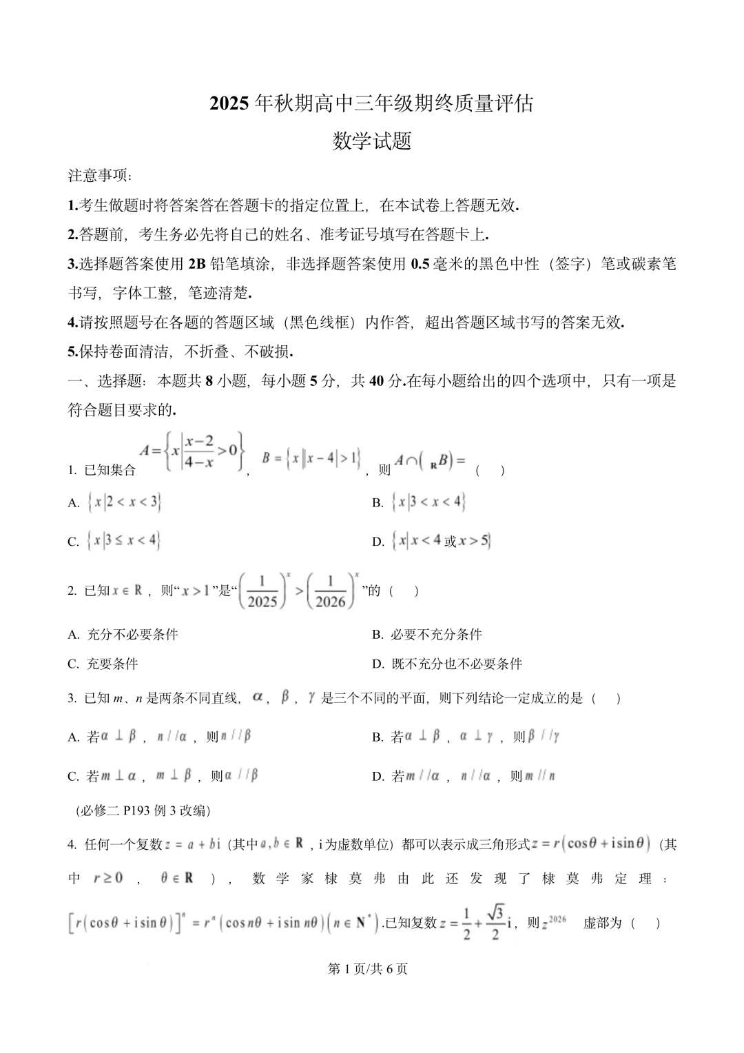 【广安一诊全科】广安市高2026届高三第一次模拟考试【广安一诊全科】广安市高2026届高三第一次模拟考...