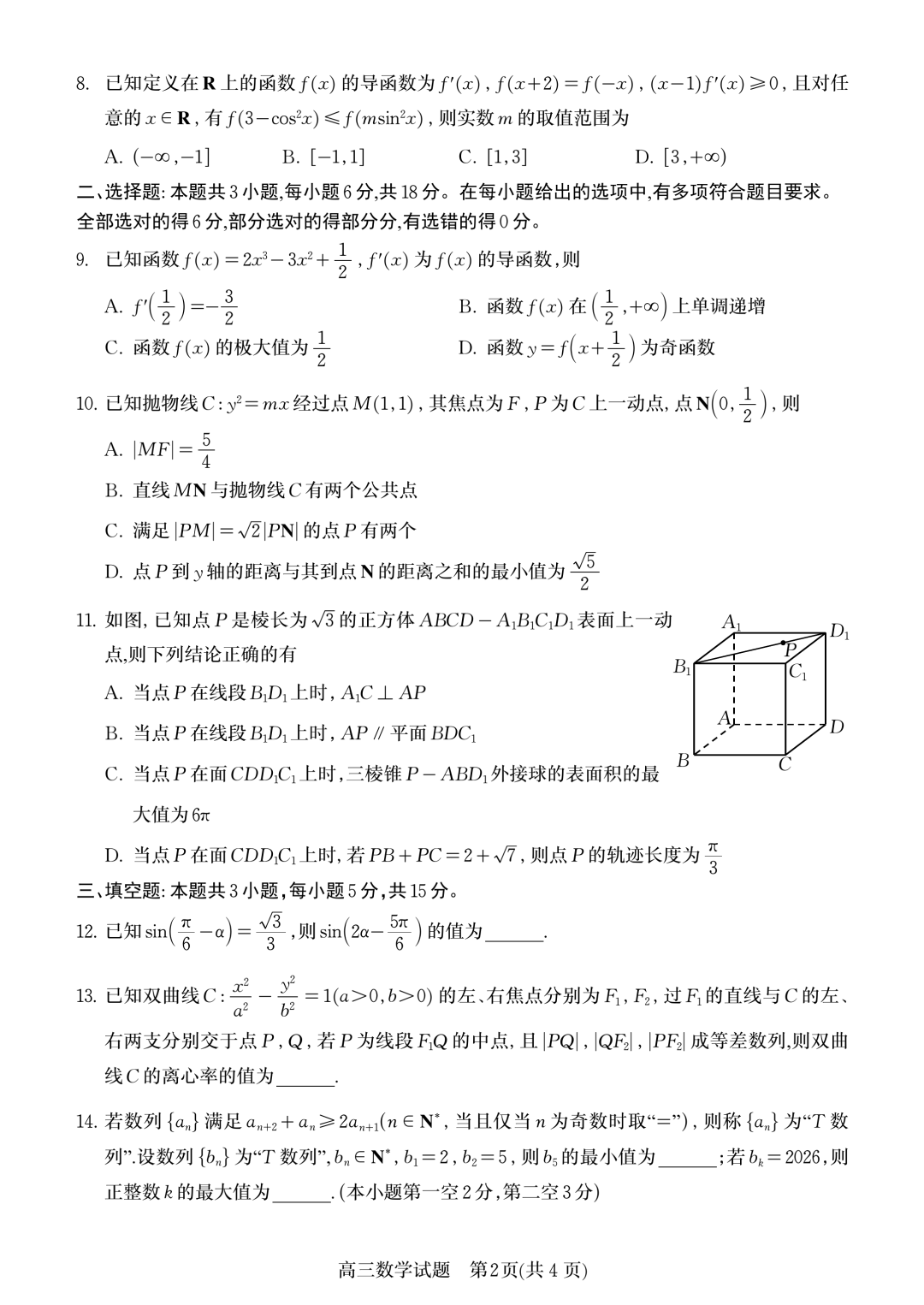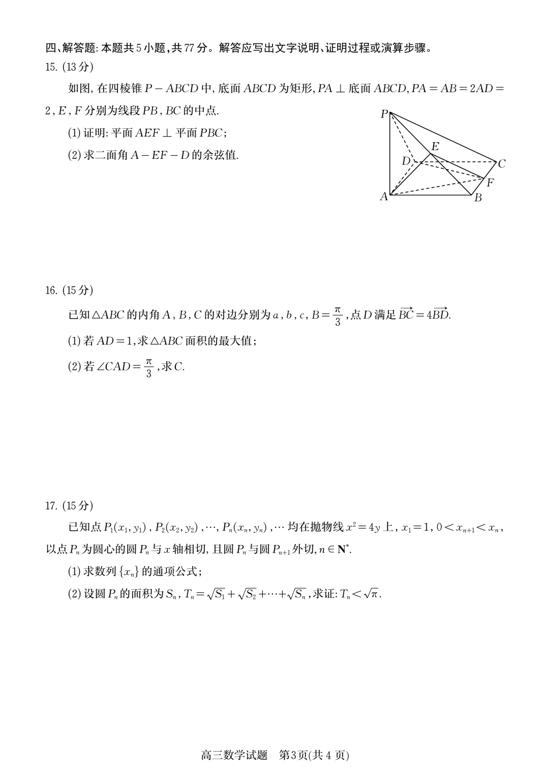 四川省广安市2026届高三第一次模拟考试(广安一诊)数学试题四川省广安市2026届高三第一次模拟考试(广安一诊...