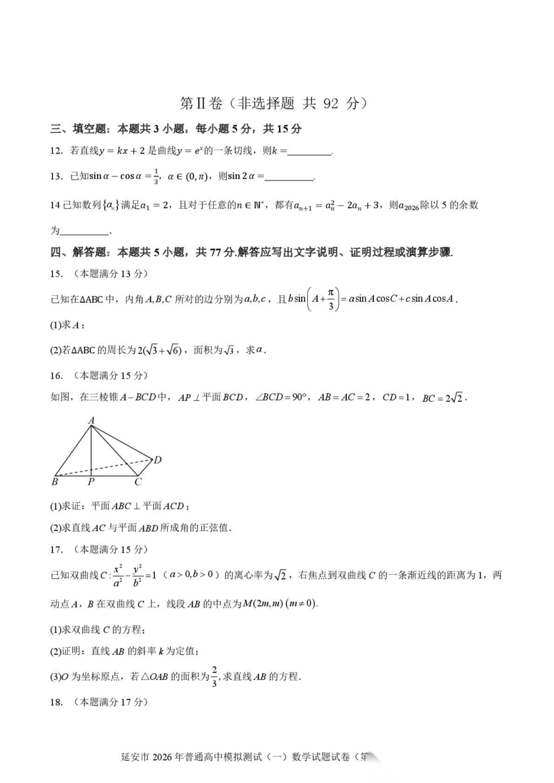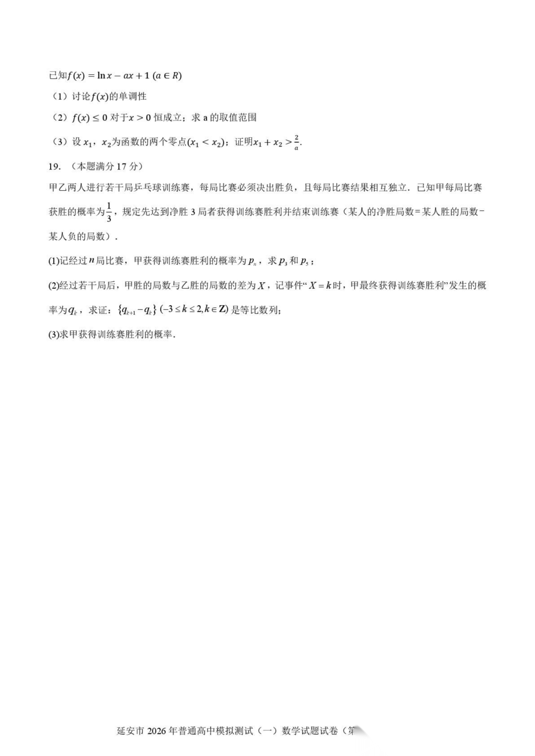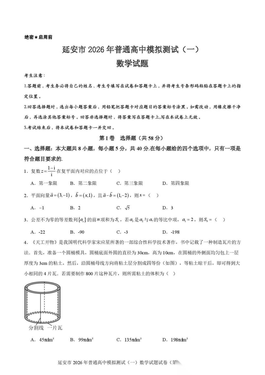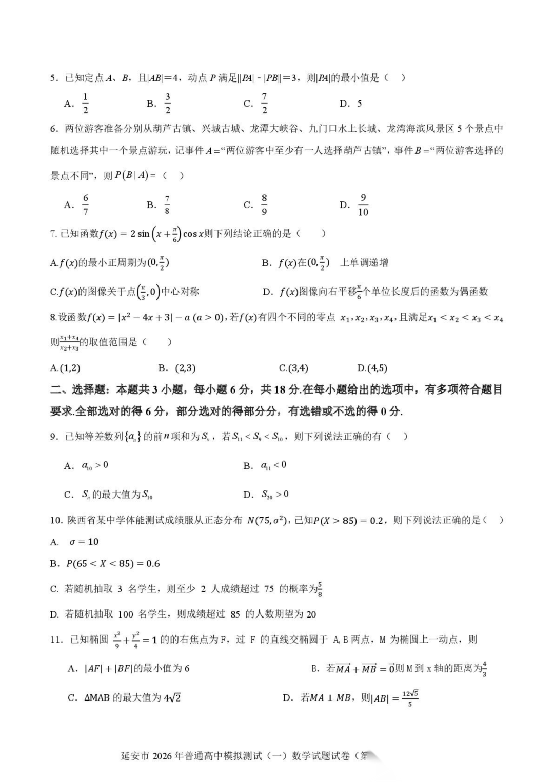 陕西省延安市2026届高三上学期普通高中模拟测试(一)(延安一模)