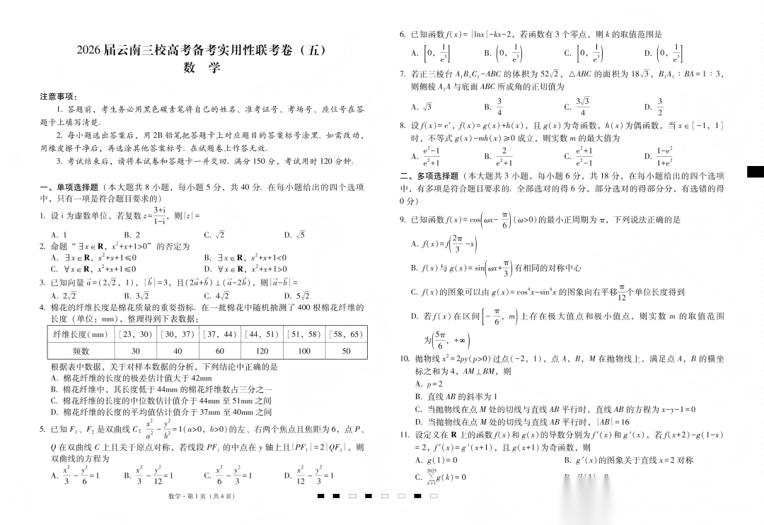 【全科】2026届云南三校高考备考实用性联考卷(五)【全科】2026届云南三校高考备考实用性联考卷(五...