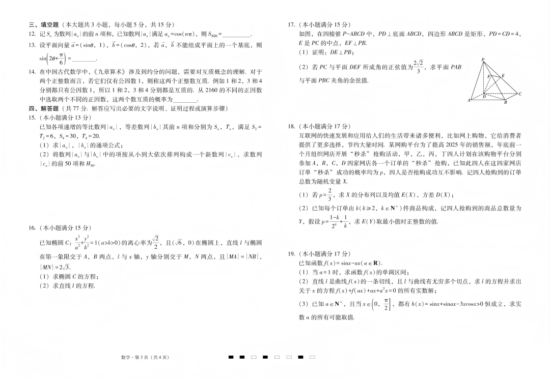四川省广安市2026届高三第一次模拟考试(广安一诊)数学试题四川省广安市2026届高三第一次模拟考试(广安一诊...