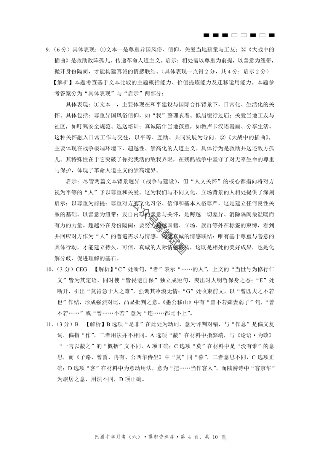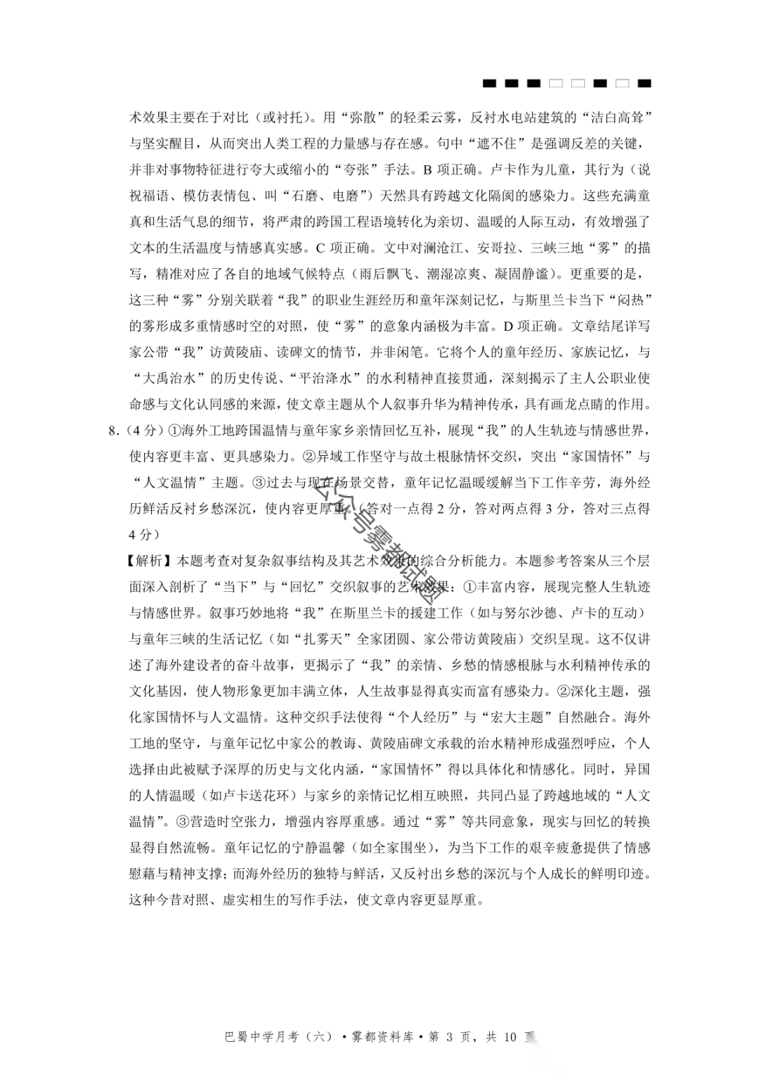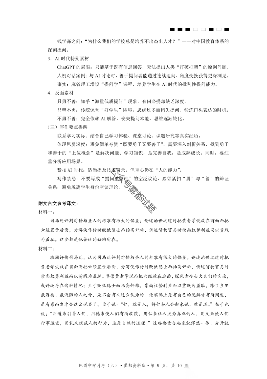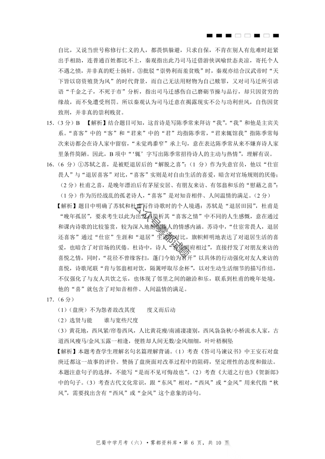 2026届重庆市巴蜀中学高三1月月考卷(五)语文、数学试卷及参考答案