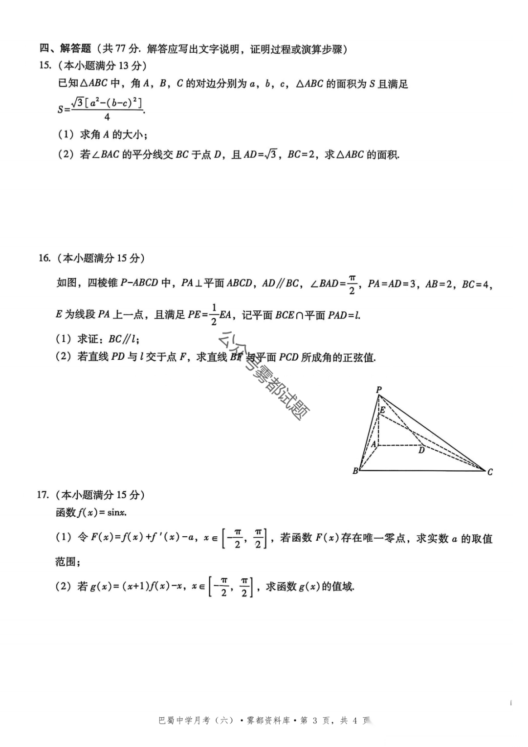 四川省广安市2026届高三第一次模拟考试(广安一诊)数学试题四川省广安市2026届高三第一次模拟考试(广安一诊...