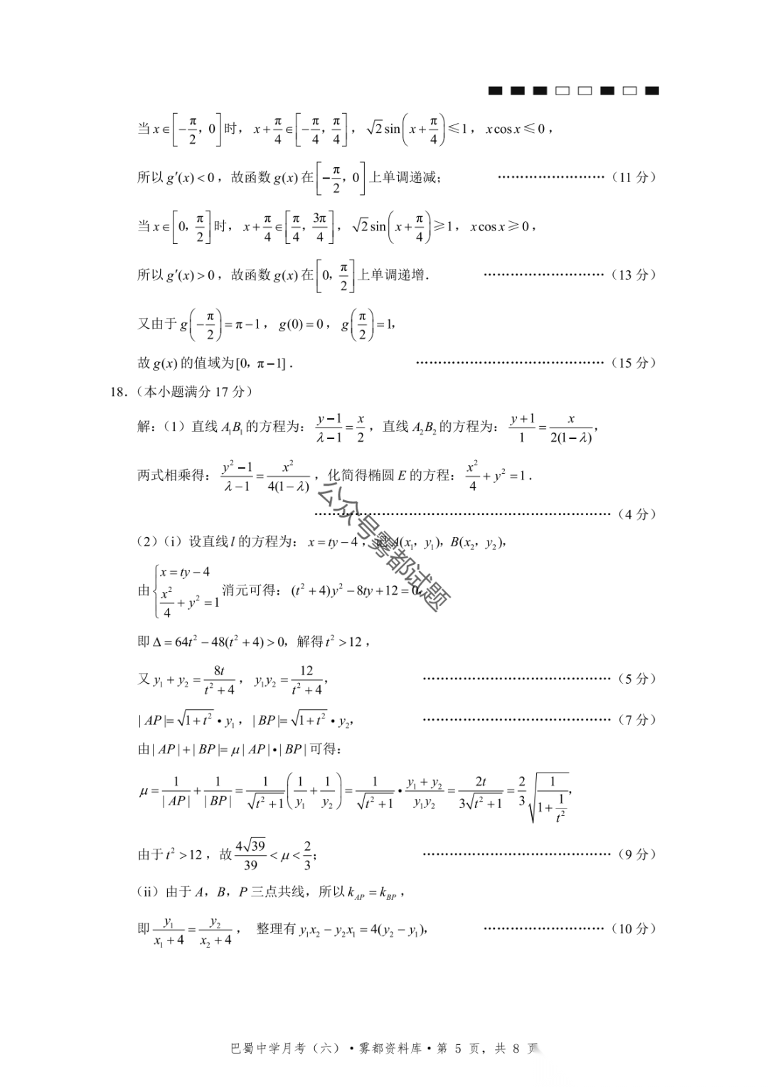 重庆八中2026届高考适应性月考卷(五)数学试题重庆八中2026届高考适应性月考卷(五)数学试题