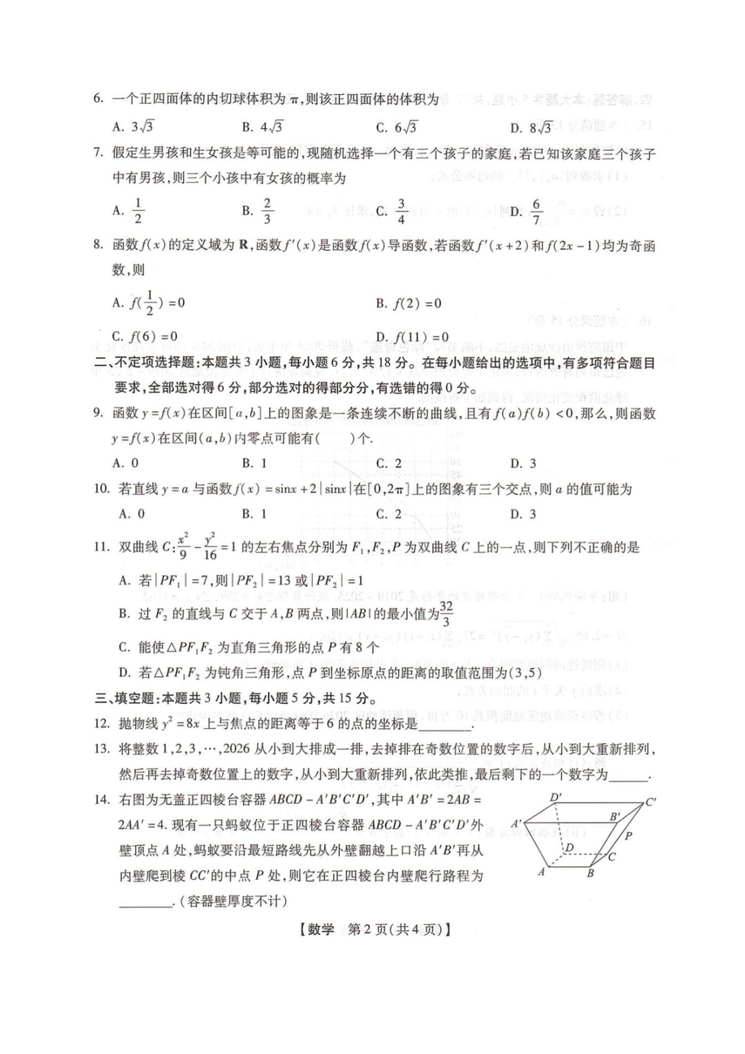 四川省广安市2026届高三第一次模拟考试(广安一诊)数学试题四川省广安市2026届高三第一次模拟考试(广安一诊...