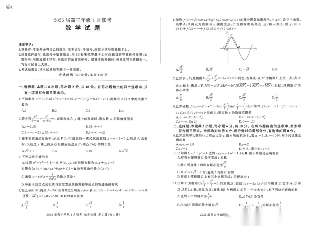 【全科】云南师大附中2026届高三1月高考适应性月考卷(六)【全科】云南师大附中2026届高三1月高考适应性月...