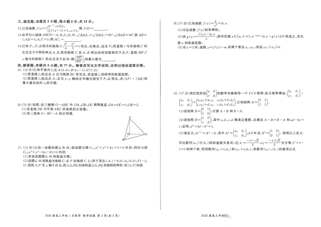 【全科】河北省五个一名校联盟2026届高三1月期末考试【全科】河北省五个一名校联盟2026届高三1月期末...