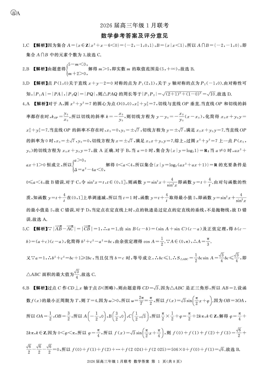 【全科】重庆市第八中学2026届高三1月高考适应性月考卷五(一诊)【全科】重庆市第八中学2026届高三1月高考适应性...