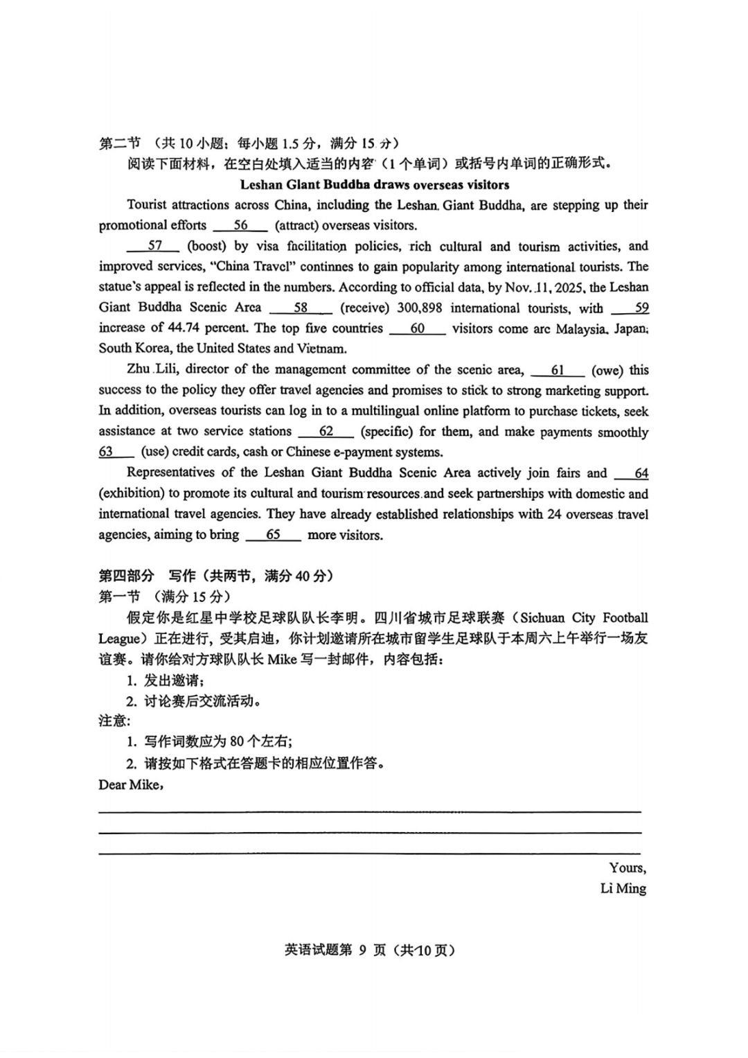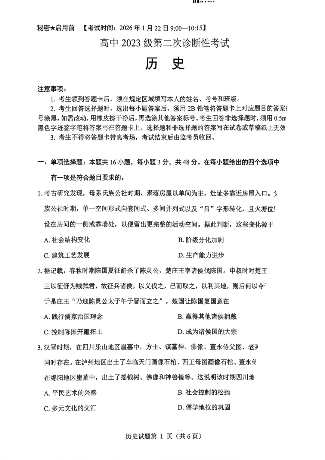 【绵阳二诊第二天科目】绵阳市高中2026届高三第二次诊断考试物理、历史、英语试卷