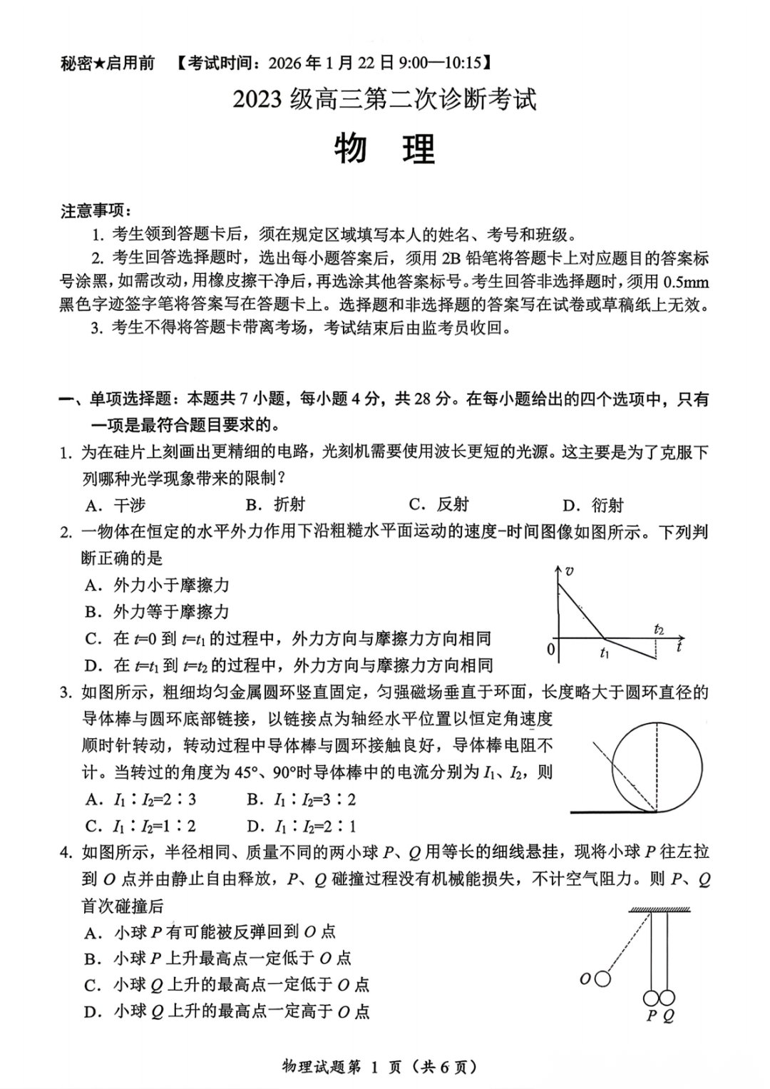 【广安一诊全科】广安市高2026届高三第一次模拟考试【广安一诊全科】广安市高2026届高三第一次模拟考...