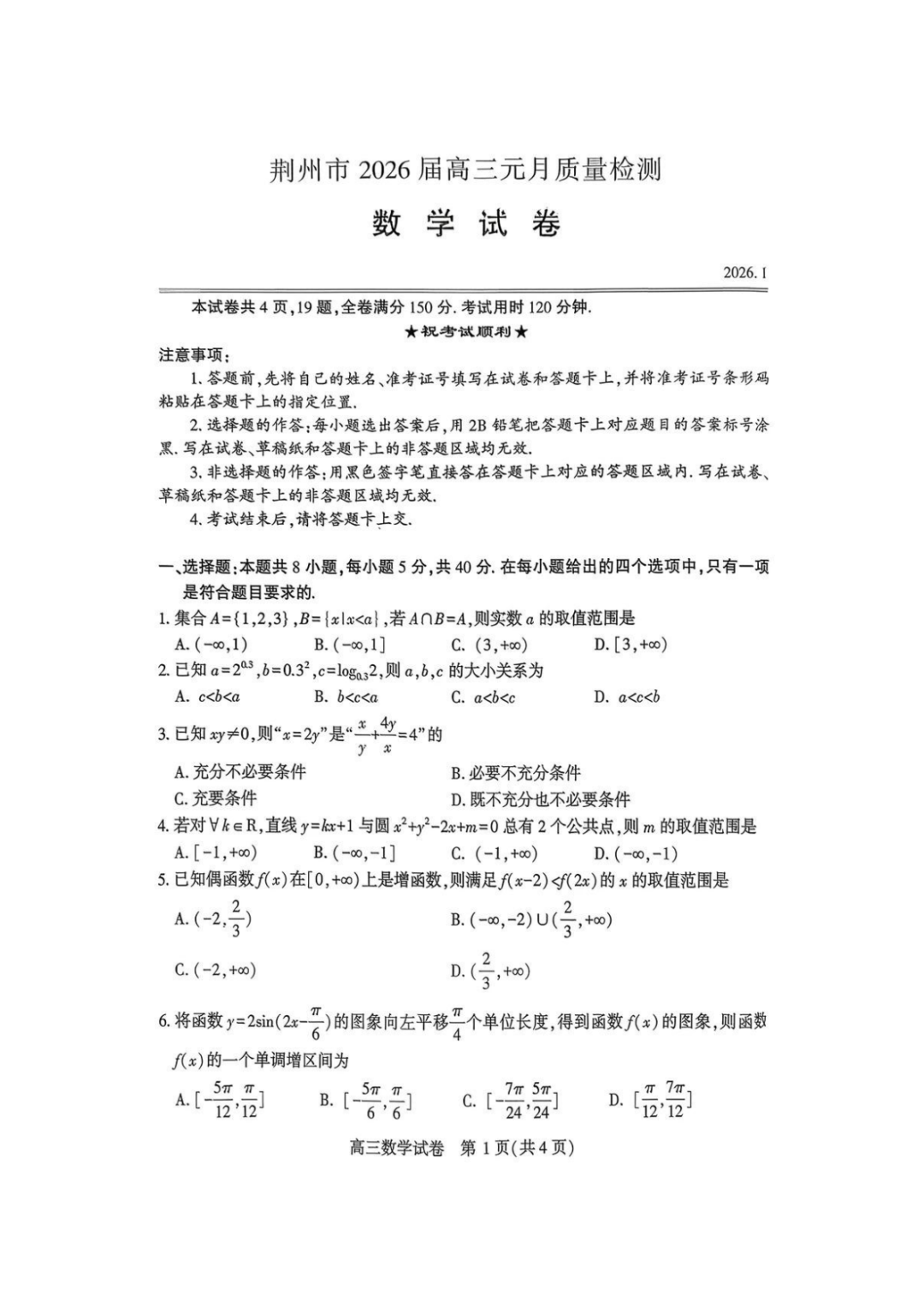 【全科】重庆市第八中学2026届高三1月高考适应性月考卷五(一诊)【全科】重庆市第八中学2026届高三1月高考适应性...