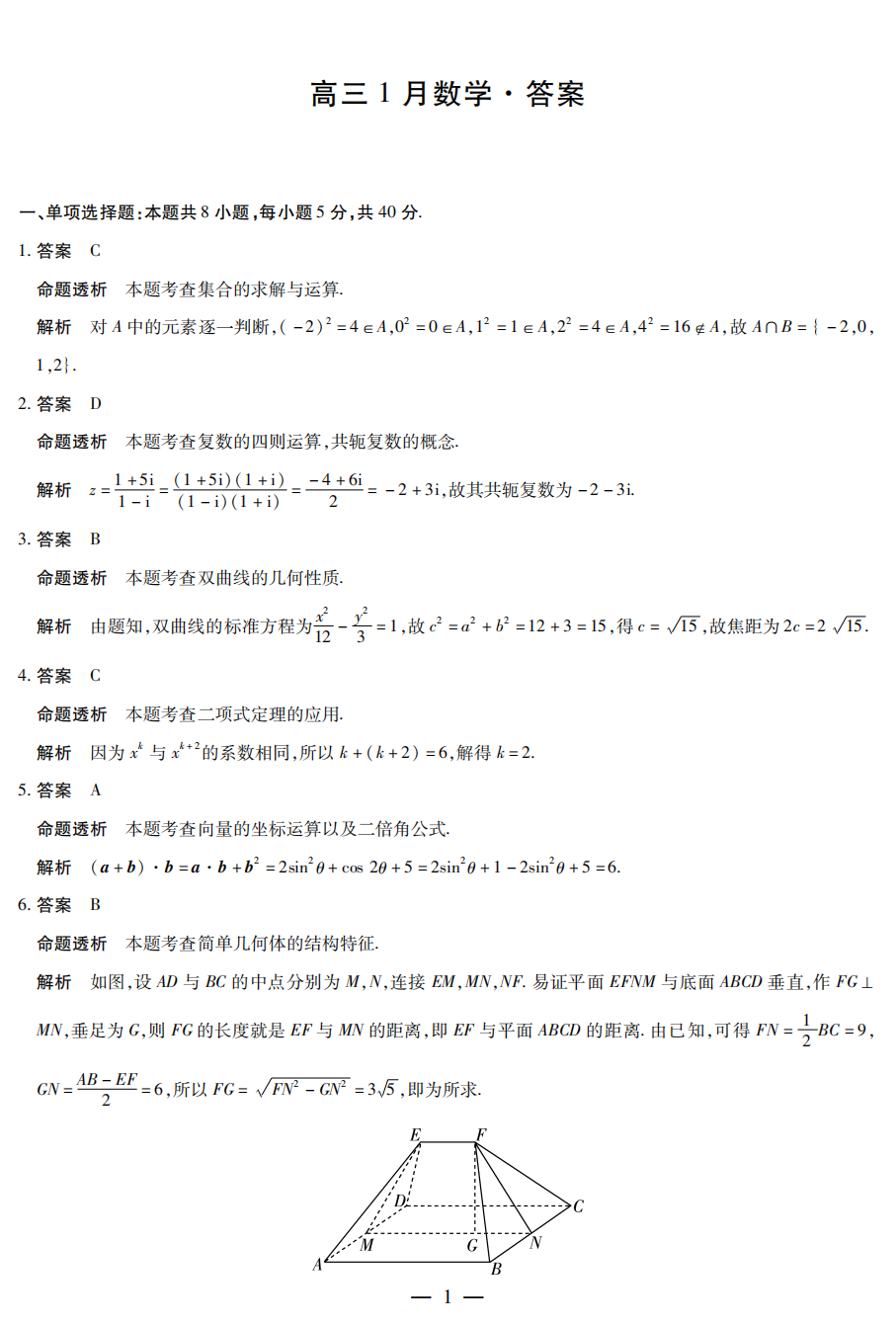 【全科】重庆市第八中学2026届高三1月高考适应性月考卷五(一诊)【全科】重庆市第八中学2026届高三1月高考适应性...