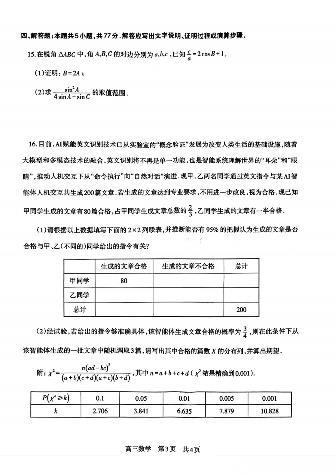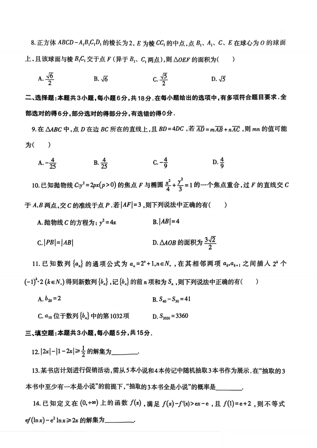 重庆八中2026届高考适应性月考卷(五)数学试题重庆八中2026届高考适应性月考卷(五)数学试题