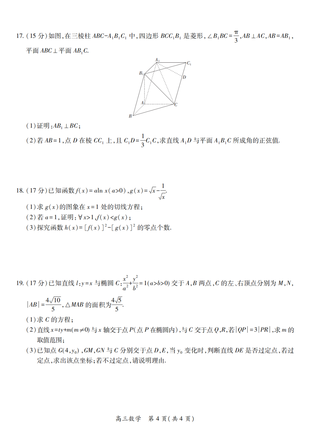 四川省广安市2026届高三第一次模拟考试(广安一诊)数学试题四川省广安市2026届高三第一次模拟考试(广安一诊...