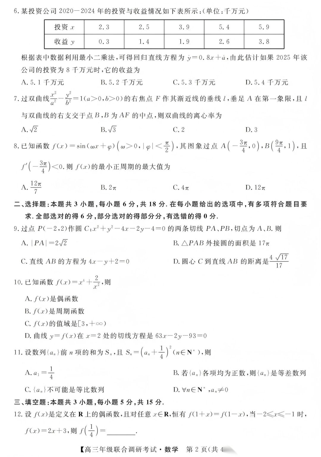 四川省广安市2026届高三第一次模拟考试(广安一诊)数学试题四川省广安市2026届高三第一次模拟考试(广安一诊...