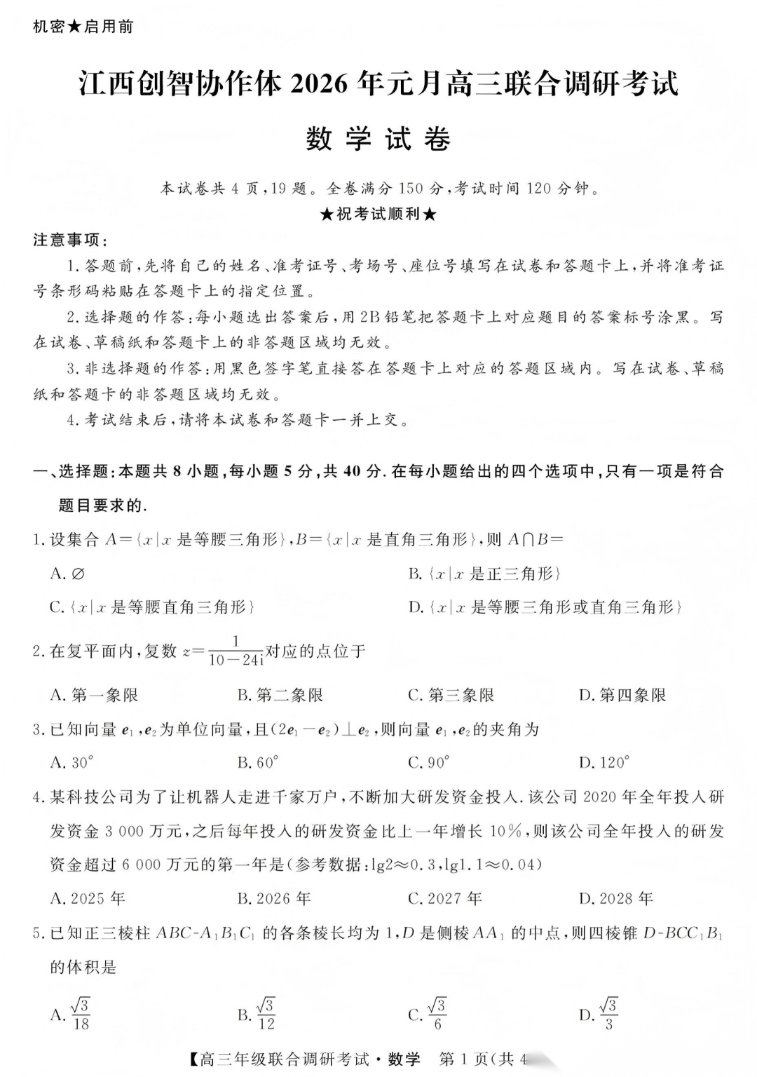【全科】江西智创协作体2026年元月高三联合调研考试