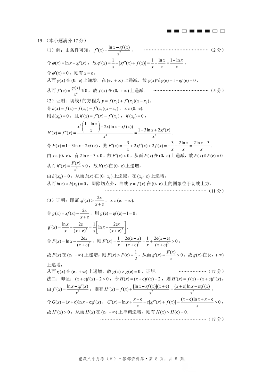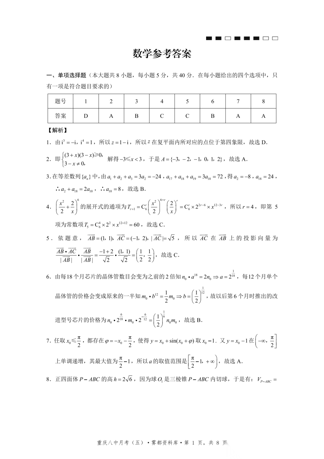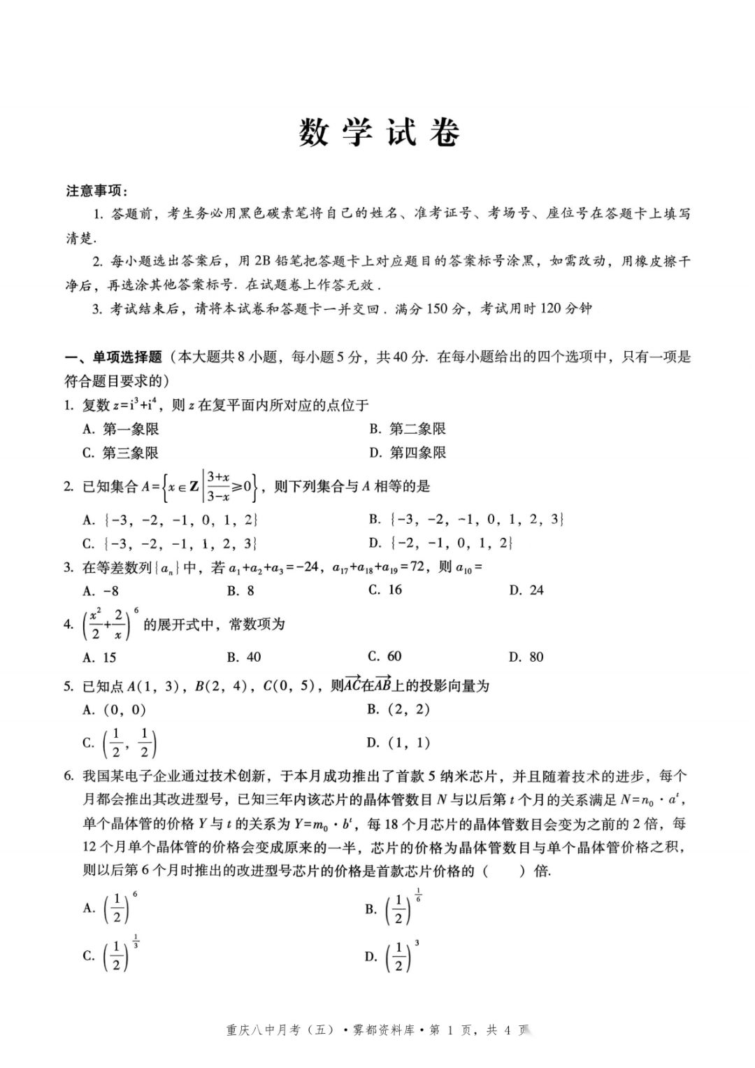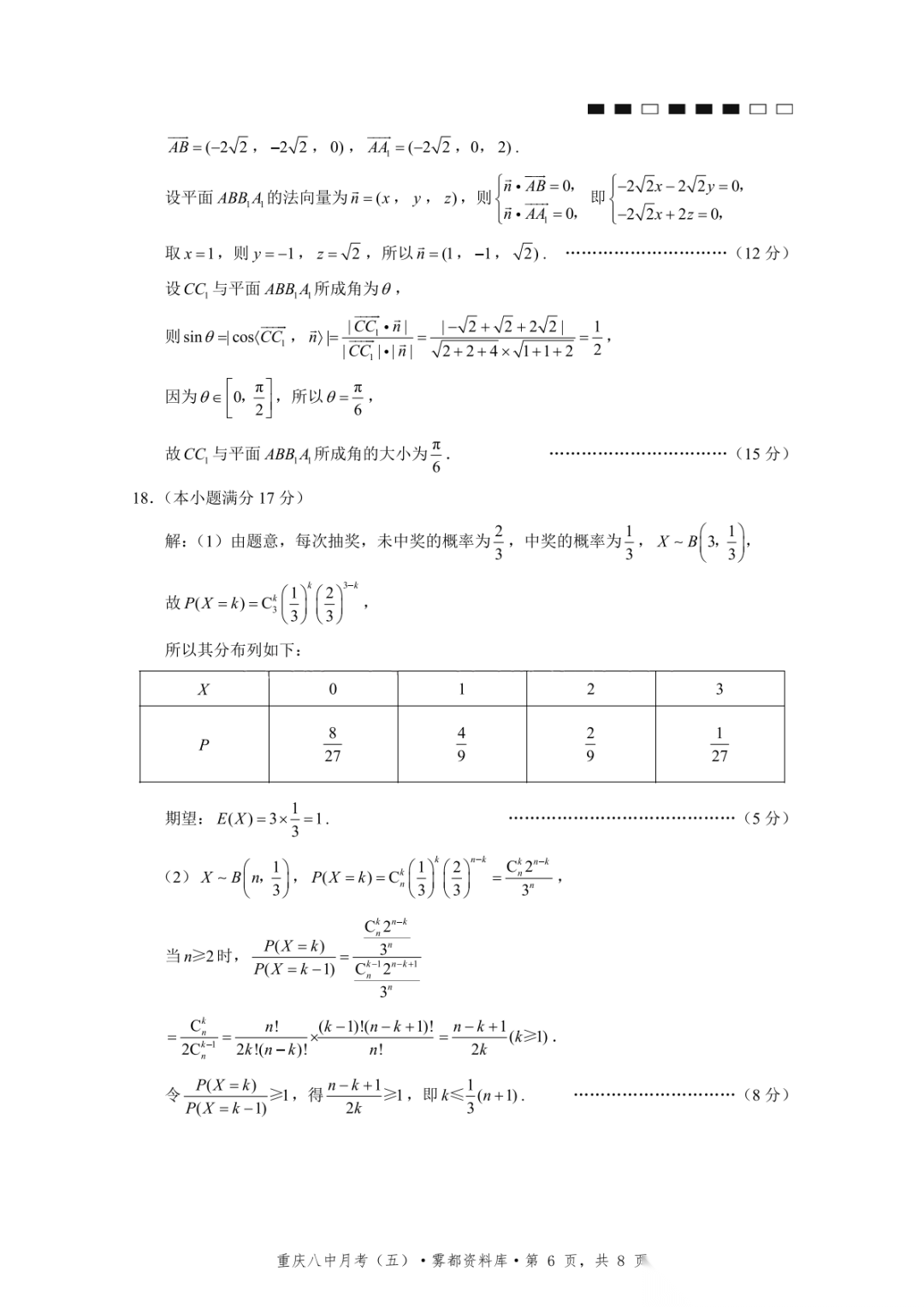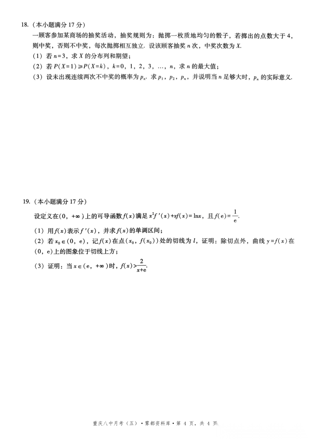 重庆八中2026届高考适应性月考卷(五)数学试题重庆八中2026届高考适应性月考卷(五)数学试题