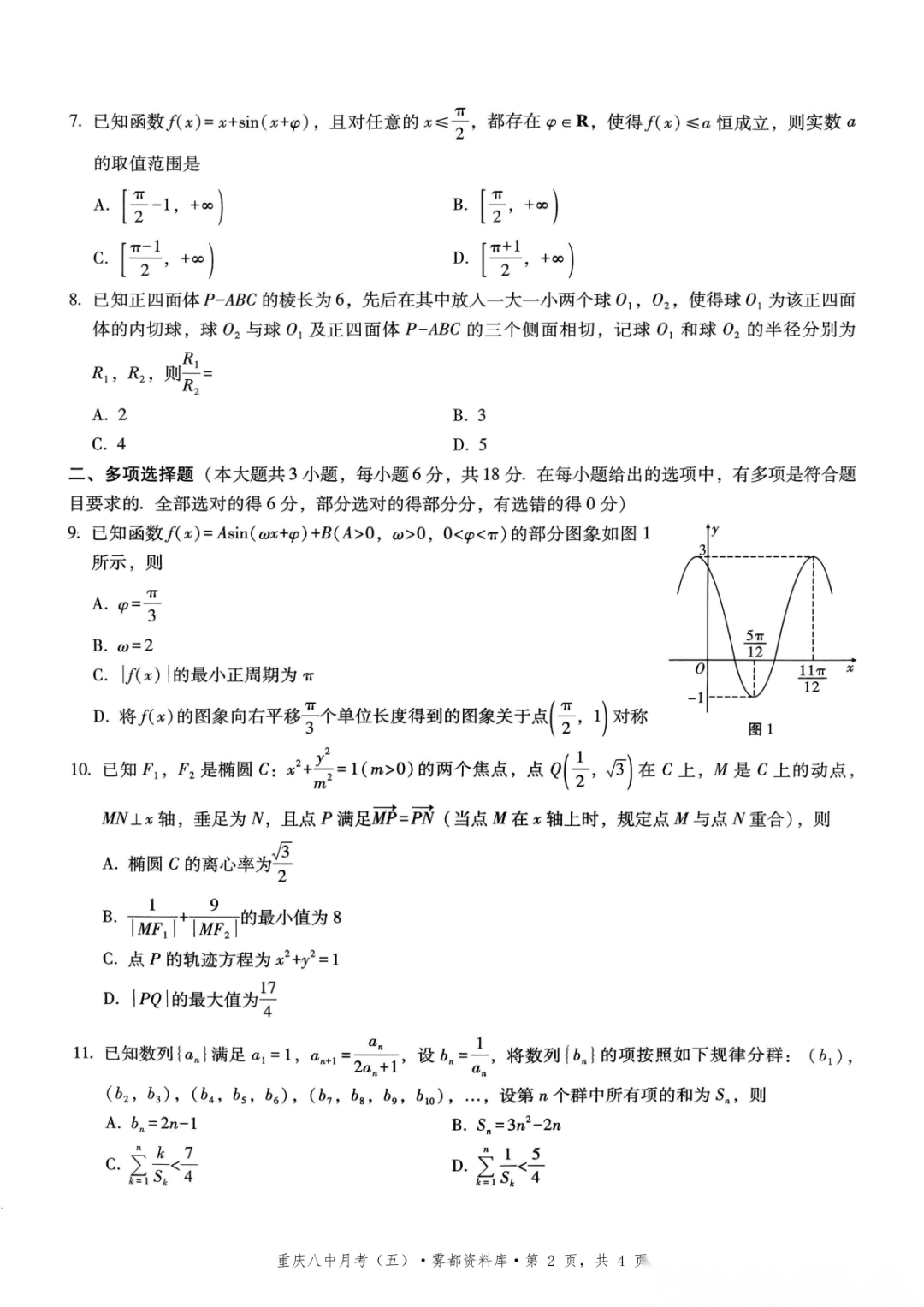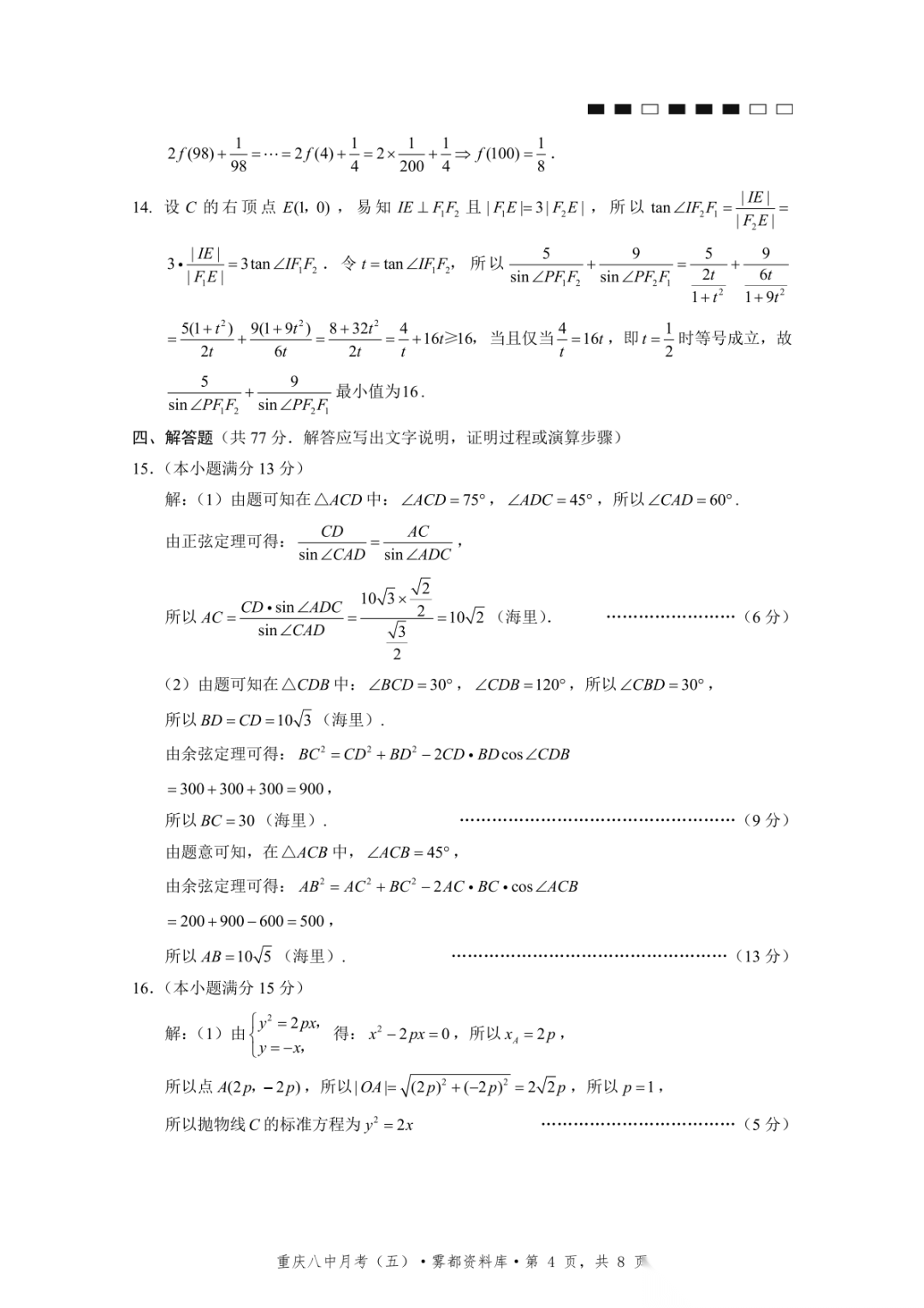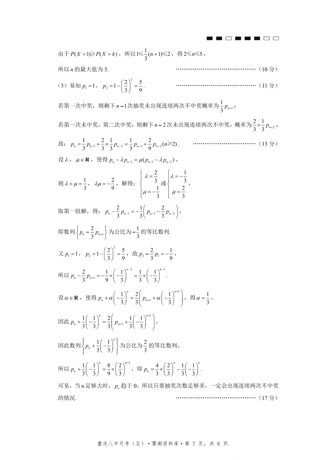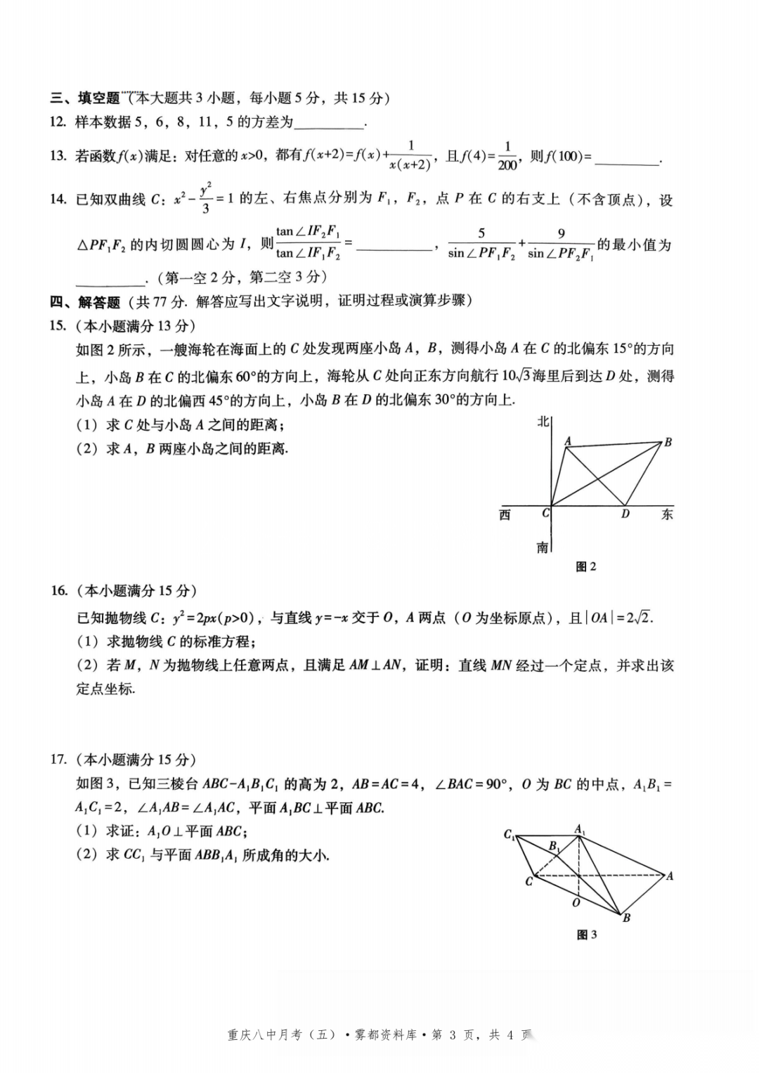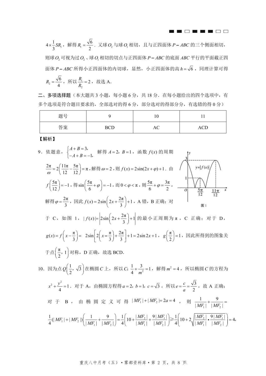重庆八中2026届高考适应性月考卷(五)数学试题重庆八中2026届高考适应性月考卷(五)数学试题